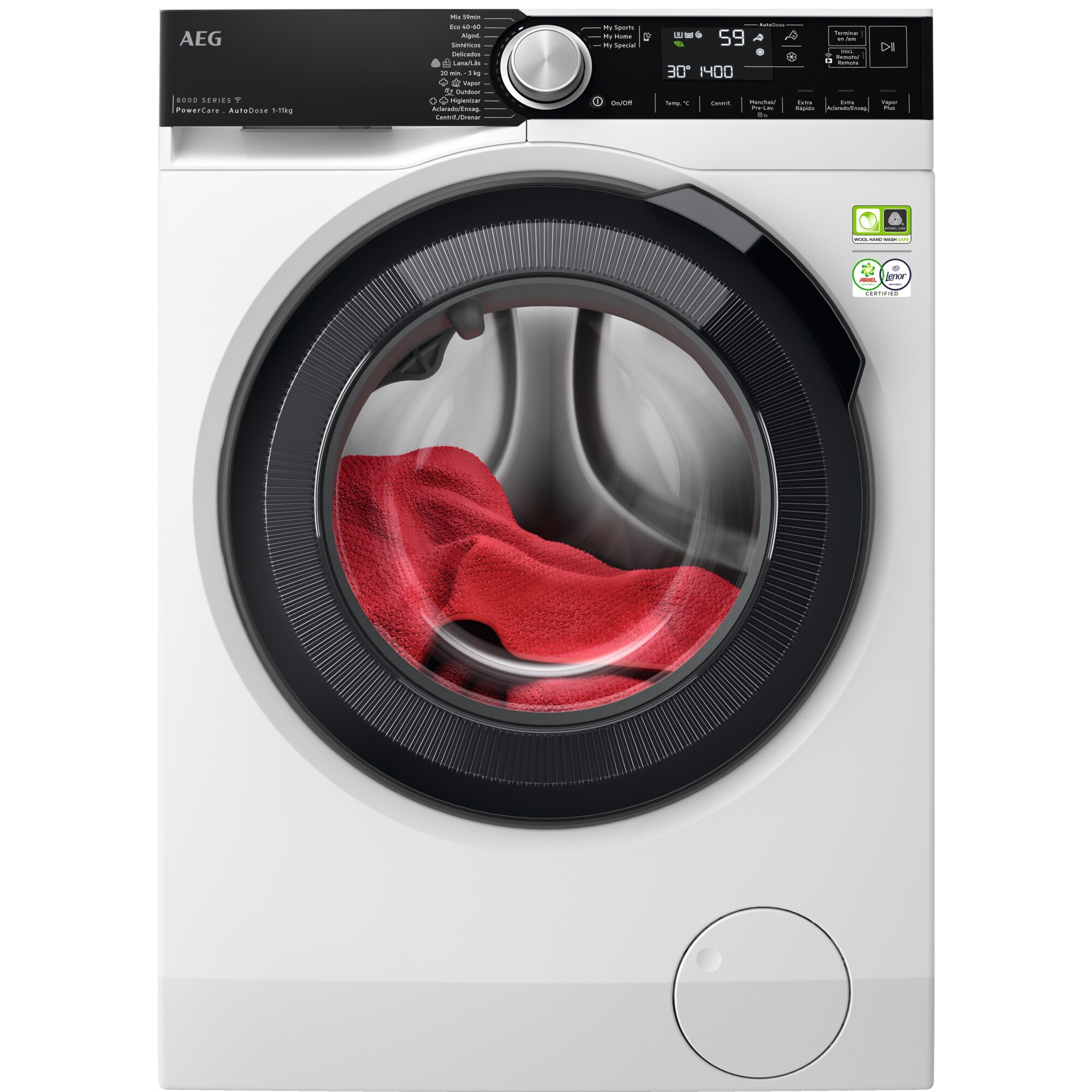 ÖKOPower: Las lavadoras AEG de la Serie 8000 ÖKOPower aplican una tecnología avanzada que combina y premezcla el detergente y el suavizante con el agua, para alcanzar hasta la última fibra.