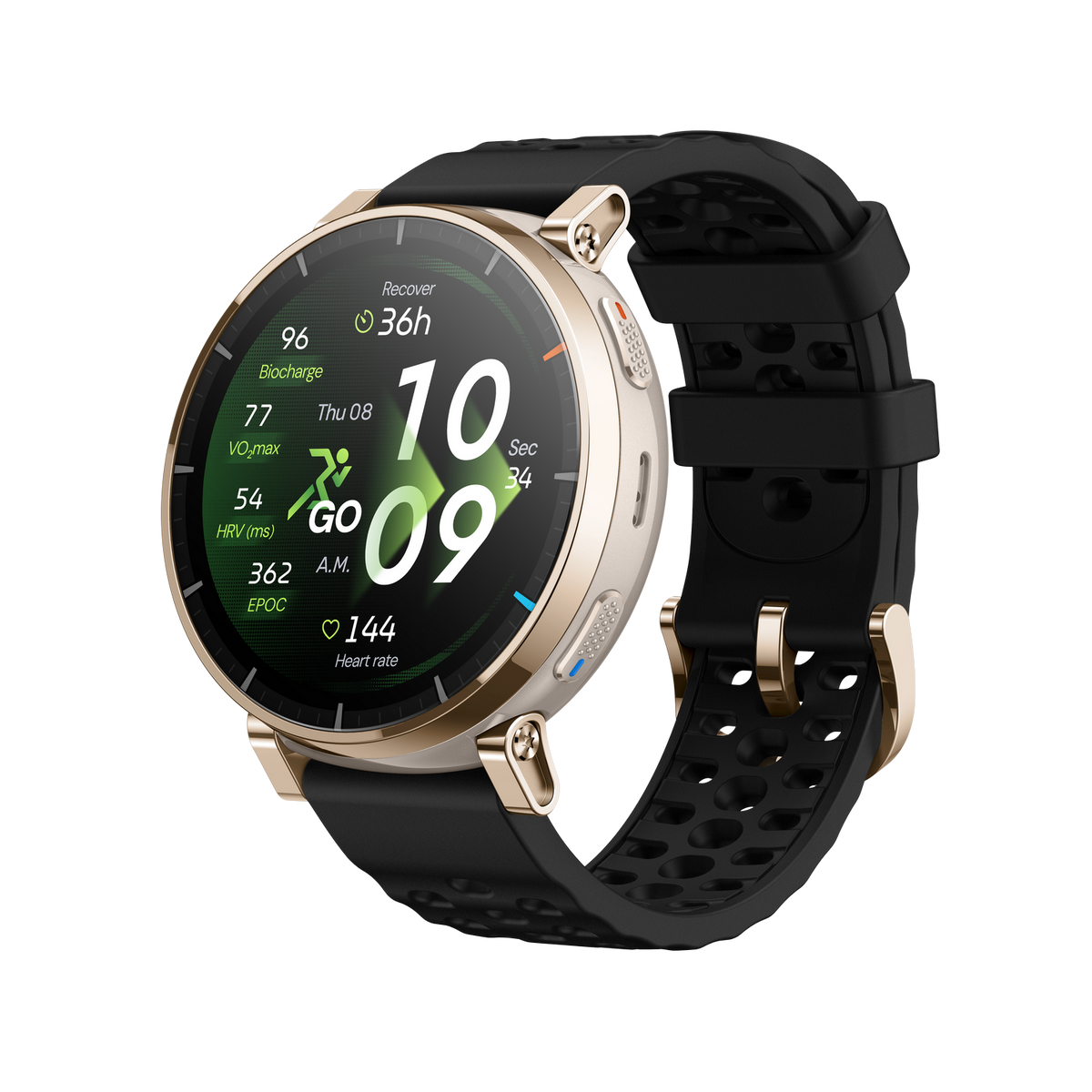 Distancia, Cadencia, Consumo de calorías, Pulso, Zonas de frecuencia cardíaca, Tiempo de recuperación, Velocidad max., Duración del sueño, Fases/-calidad del sueño, Pasos, Velocidad/Vuelta/Ritmo, Nivel de estrés, Hora/Fecha, Altitud/Escaleras, Nutrición