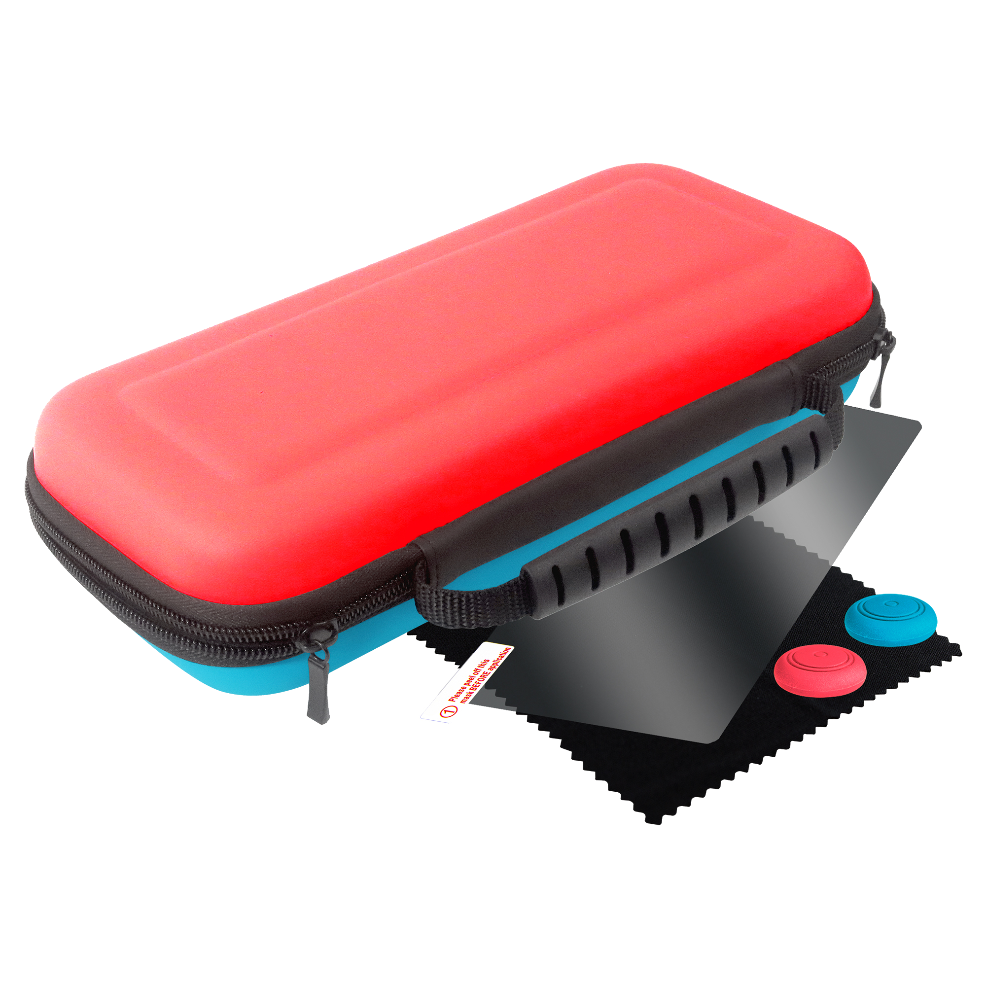 x1 Estuche, x2 fundas Action Grips para Joy-Con, x1 film protector de pantalla, x1 funda para 2 tarjetas microSD