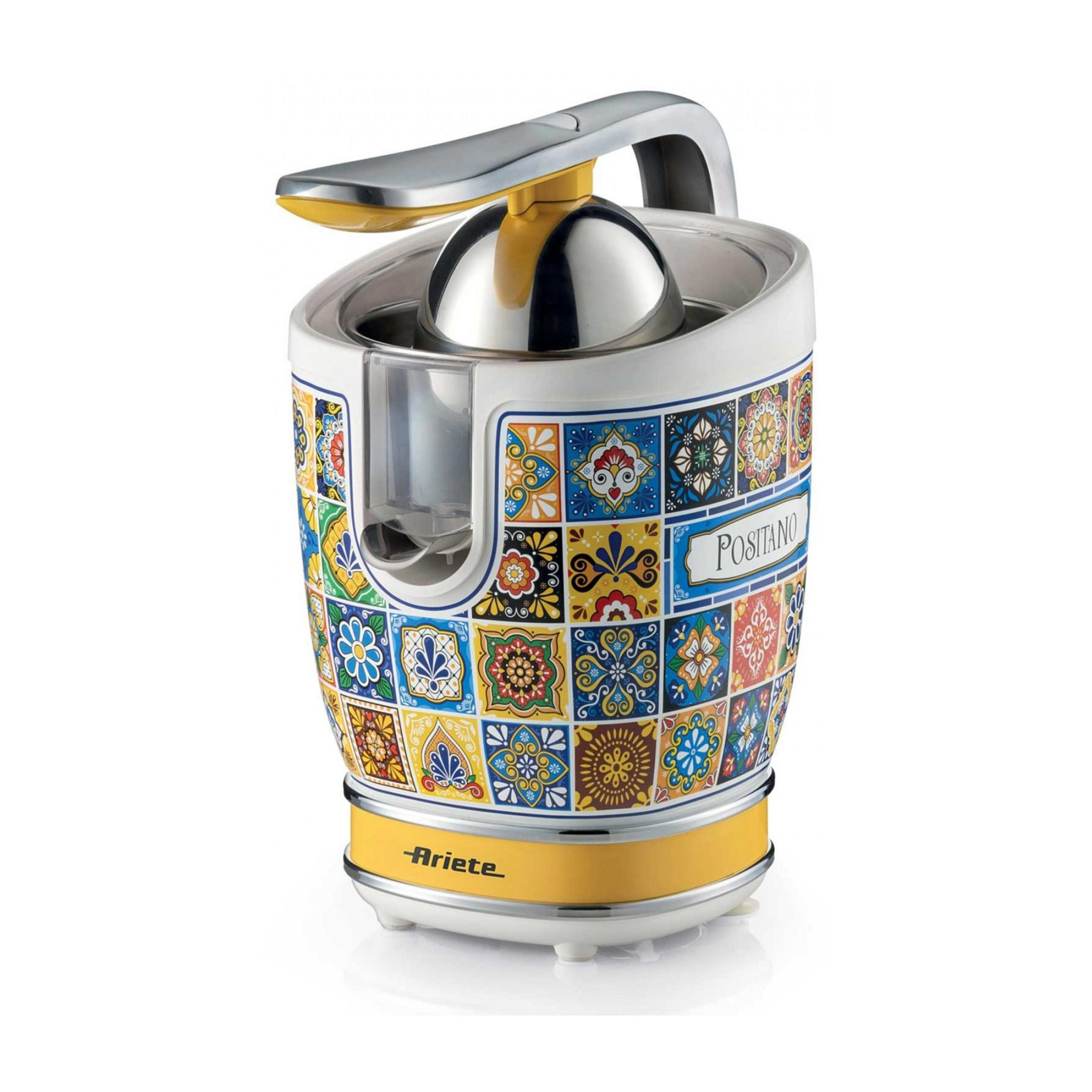 Exprimidor - Ariete Capri, 0.6 l, 85 W, Boquilla de Acero inoxidable Antigoteo, Dos Conos, Azul/Blanco