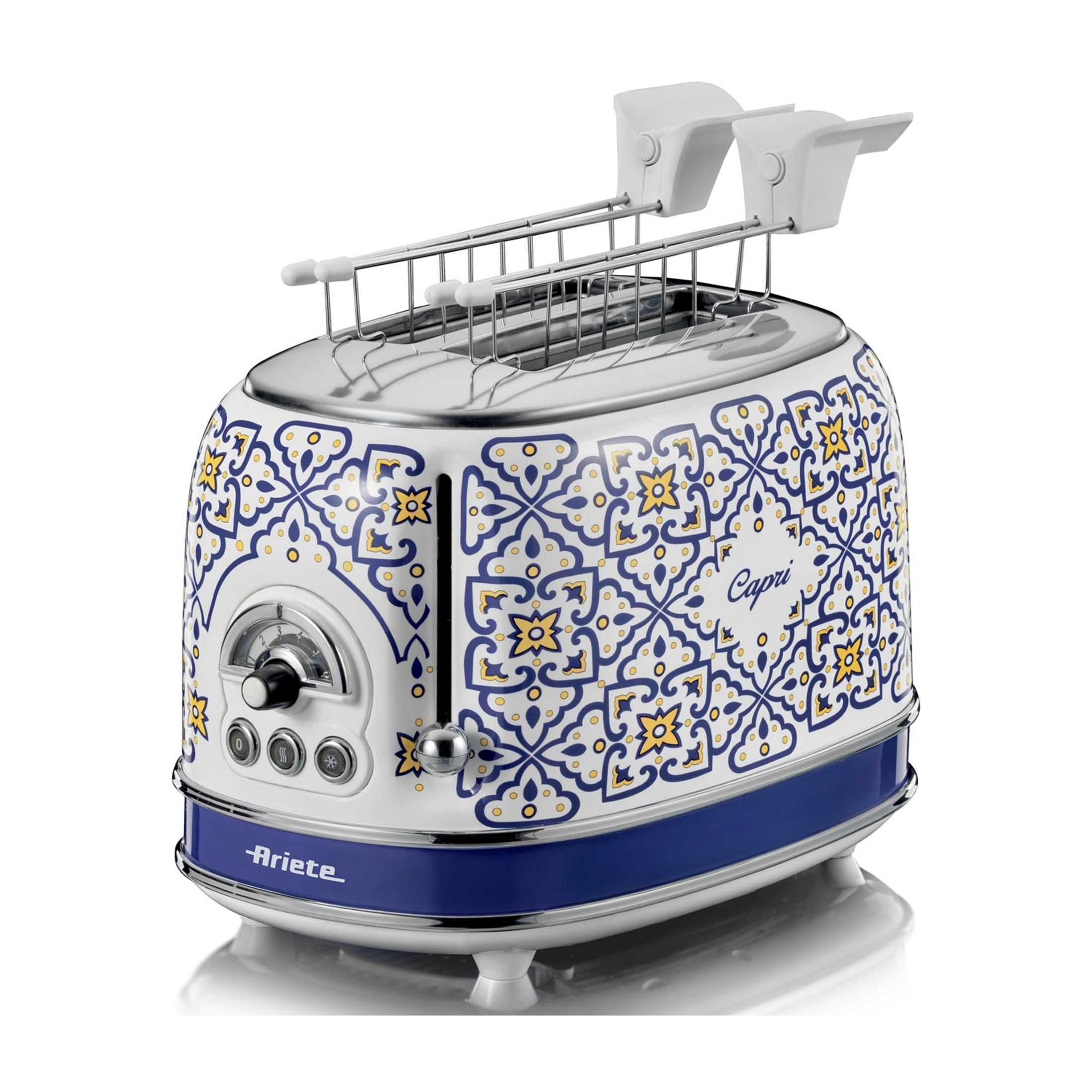 Tostadora - Ariete Capri, 810 W, 2 Ranuras, 2 Rebanadas, 6 Niveles de Tostado, Azul/Blanco