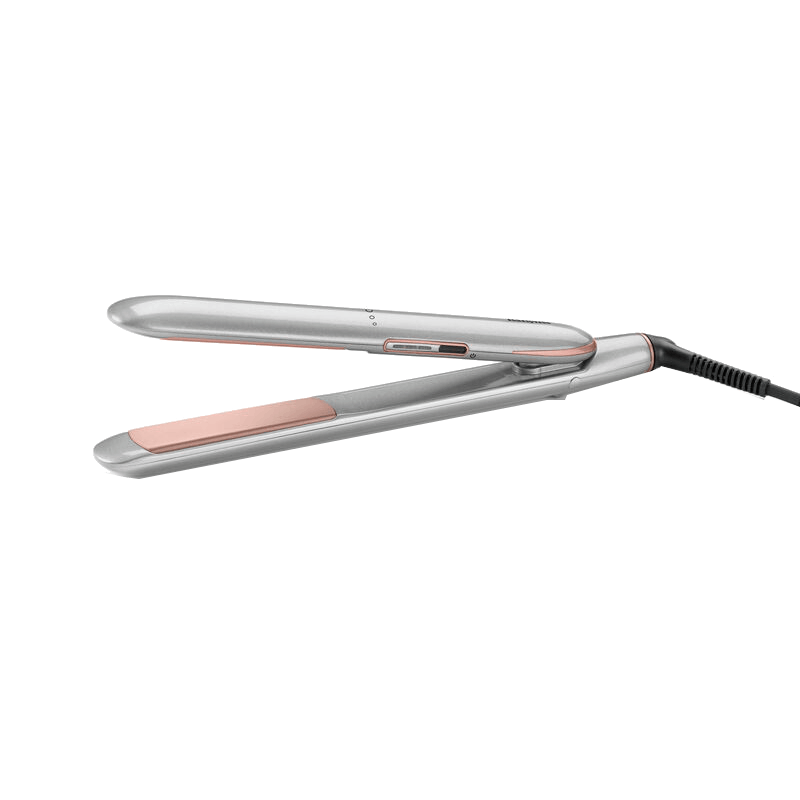 Plancha de pelo - BaByliss Titanium Shine ST620E, Cerámica, 150ºC a 230 °C, Placas largas de 25 x 110 mm, Iónico, Plata