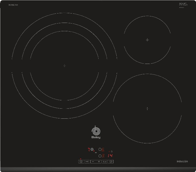 Placa inducción - Balay 3EB865ERS, 3 zonas, Zona Gigante 28 cm, Función Sprint, Negro
