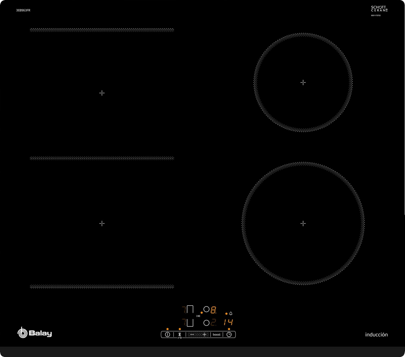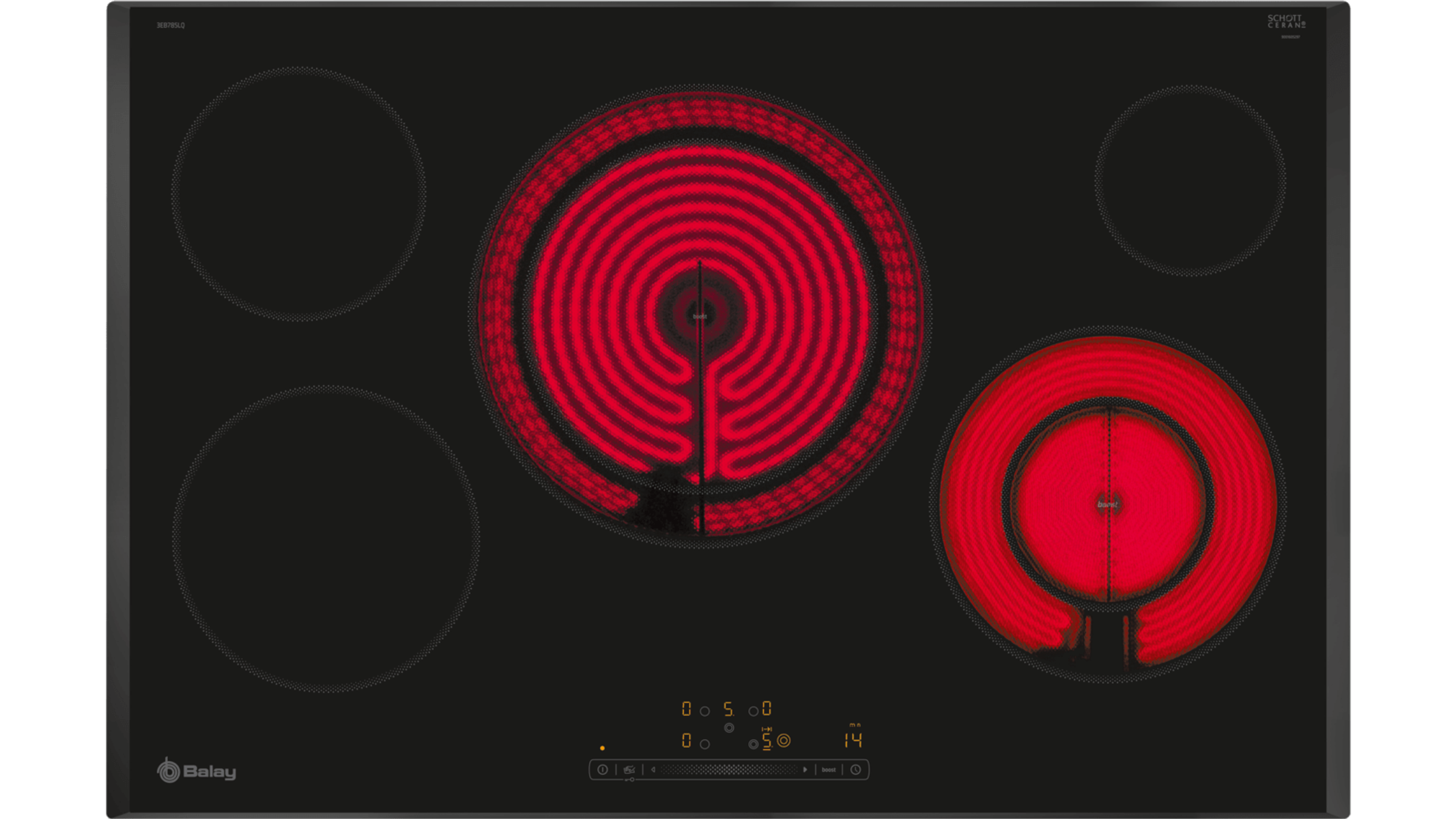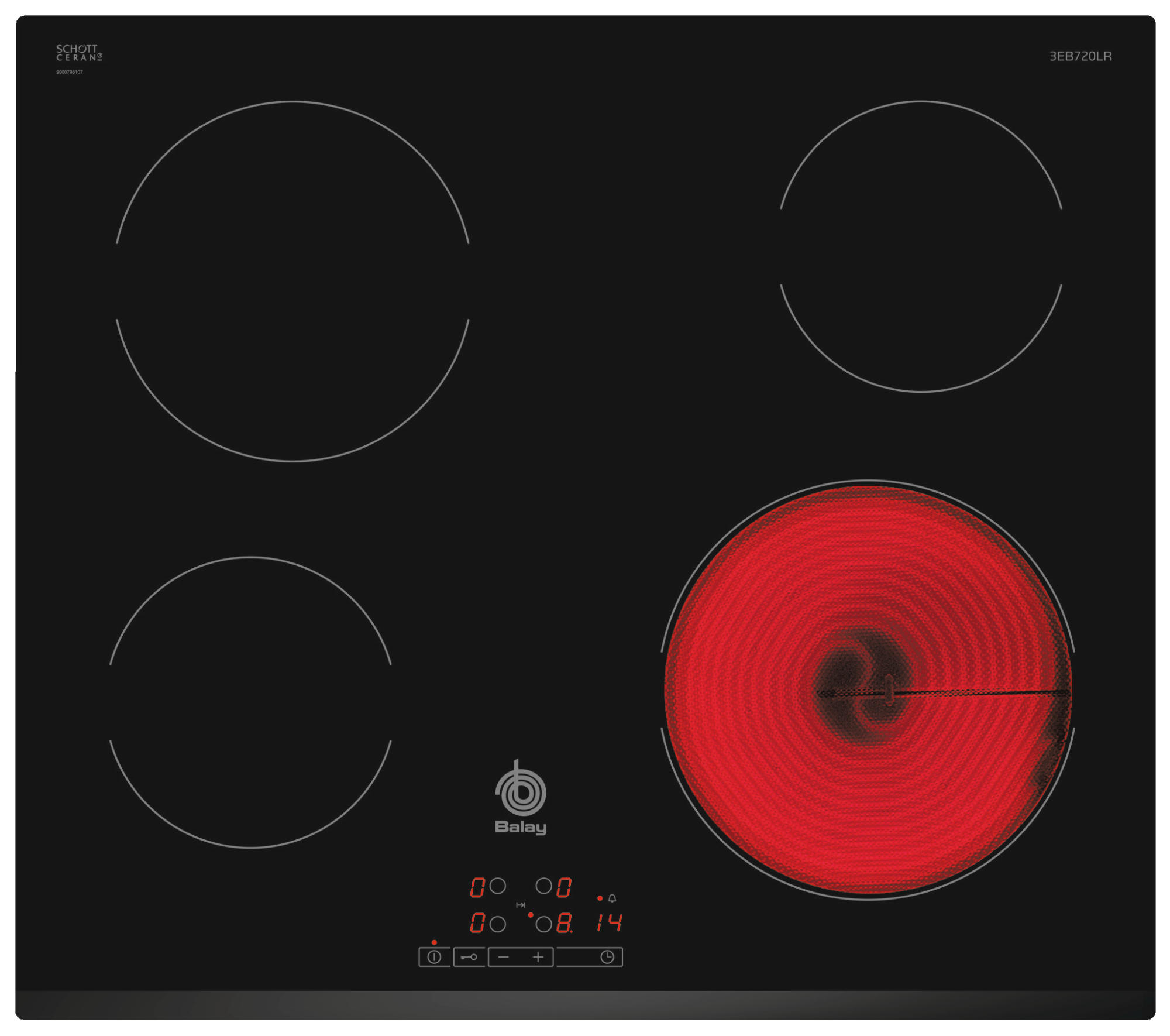 Placa vitrocerámica - Balay 3EB720LR, 4 zonas, Función Programación , Negro