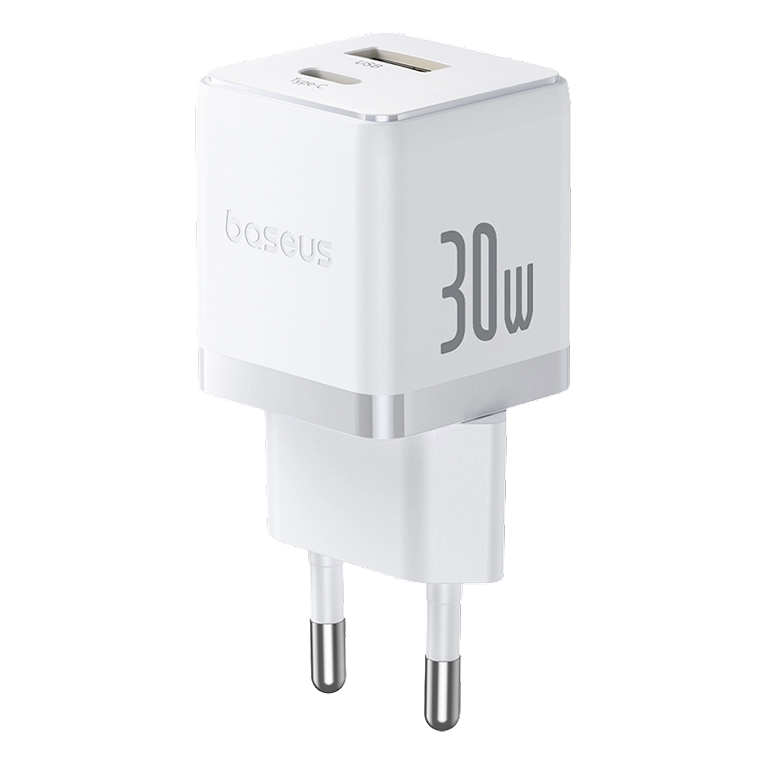 Cargador de pared - Baseus PALM, 30W, USB y Tipo C, Carga rápida, Tamaño extrapequeño, Carga simultánea, Control inteligente de temperatura, Blanco