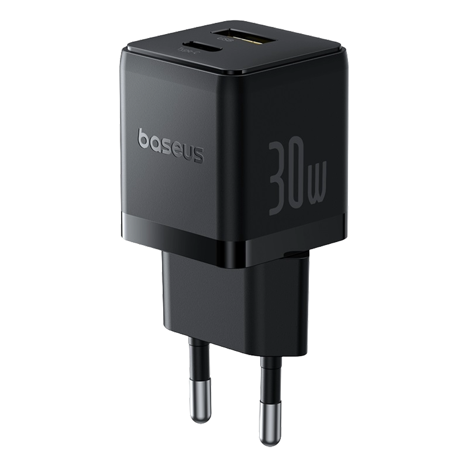 Cargador de pared - Baseus PALM, 30W, USB y Tipo C, Carga rápida, Tamaño extrapequeño, Carga simultánea, Control inteligente de temperatura, Negro
