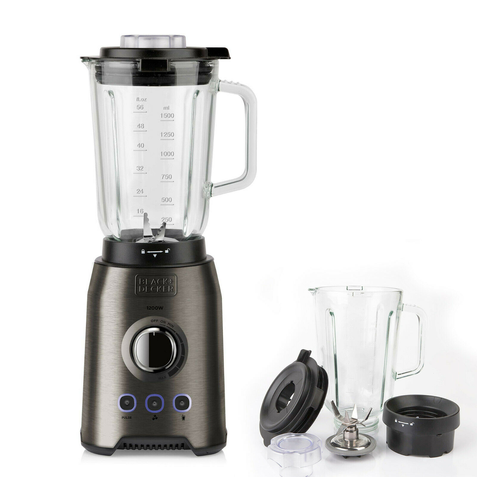 REACONDICIONADO Seminuevo Muy bueno Batidora de vaso - Black & Decker ES9120080B, ‎1800 W, ‎Control velocidad regulable, 1.8 l, 3 funciones, Gris