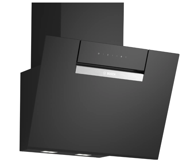 Campana decorativa - Bosch DWK67FN60, Serie 4, 4 velocidades, 768 m³/h, Home Connect, Motor Eco Silence, 59 cm, Cristal negro