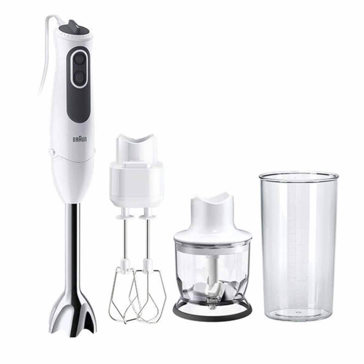 Batidora de mano - Braun Minipimer MultiQuick 3 MQ3035WH Sauce, 700W, Vaso de 0.6 l, PowerBell Plus, 2 Velocidades, 2 accesorios+Picadora, Blanco