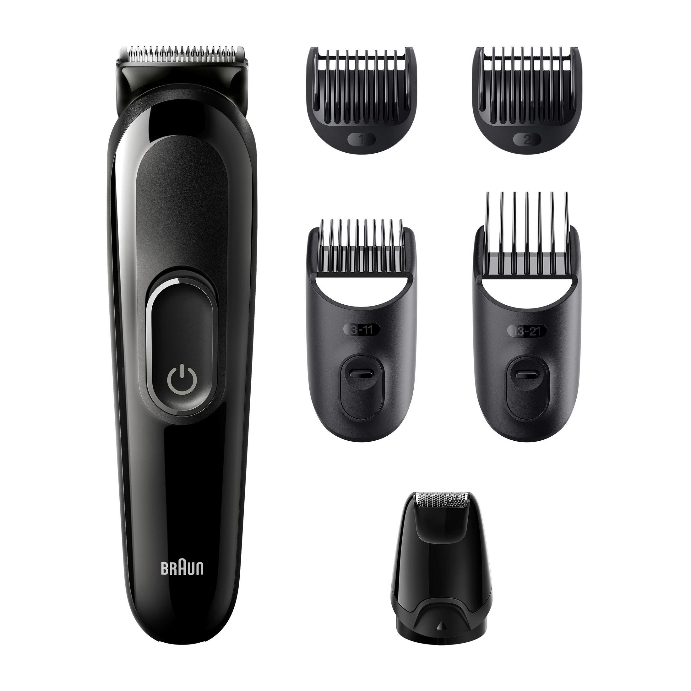 1x cortapelos serie 5 Braun, 2x peines (3–24 mm, 14-35 mm), 1x cepillo de limpieza.