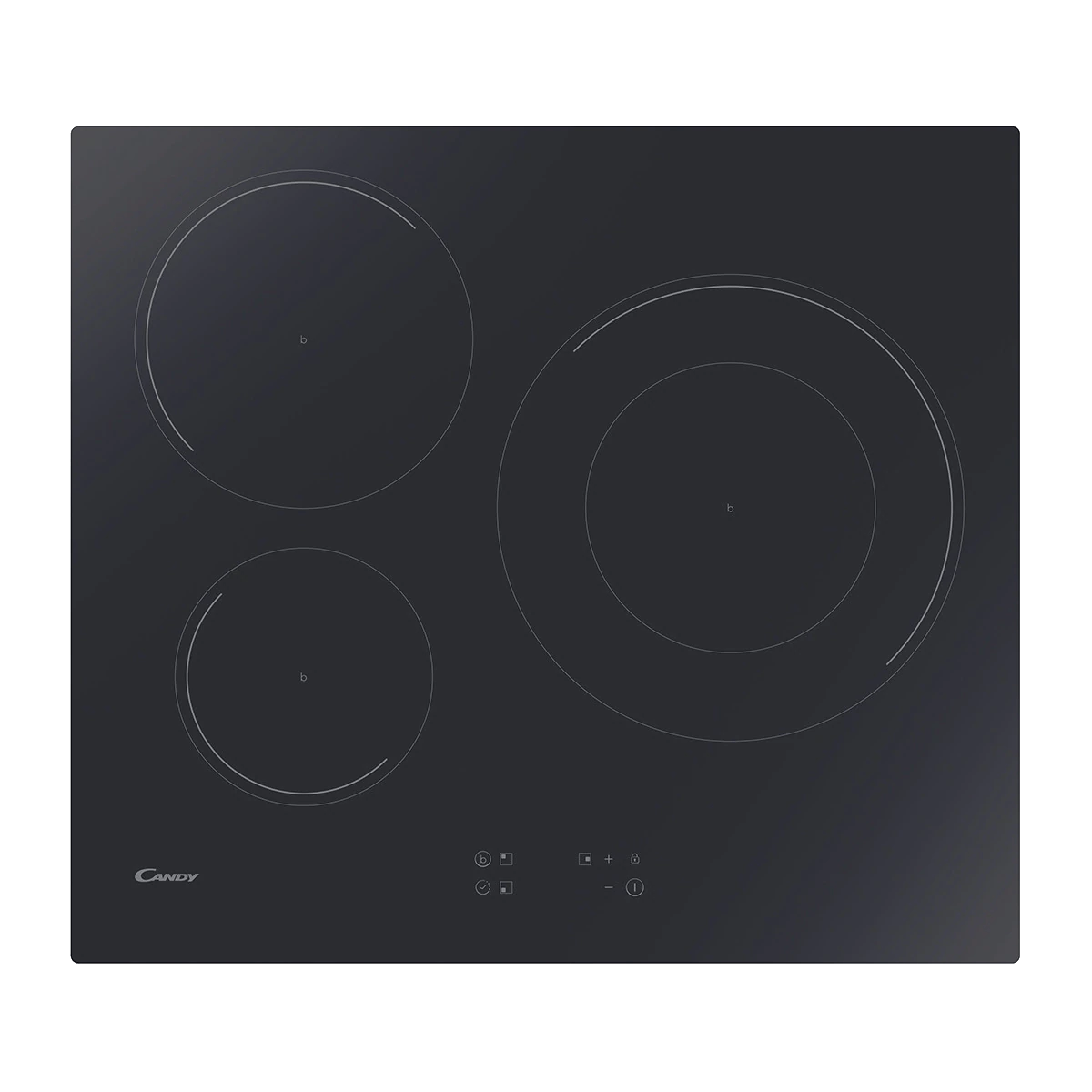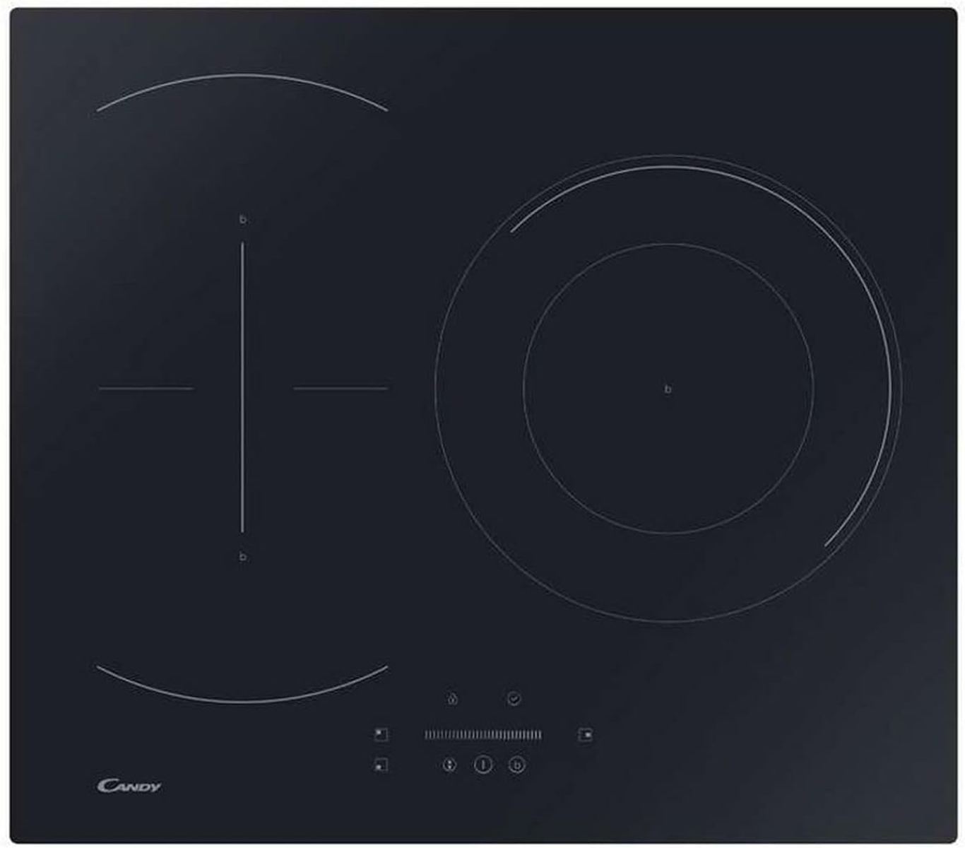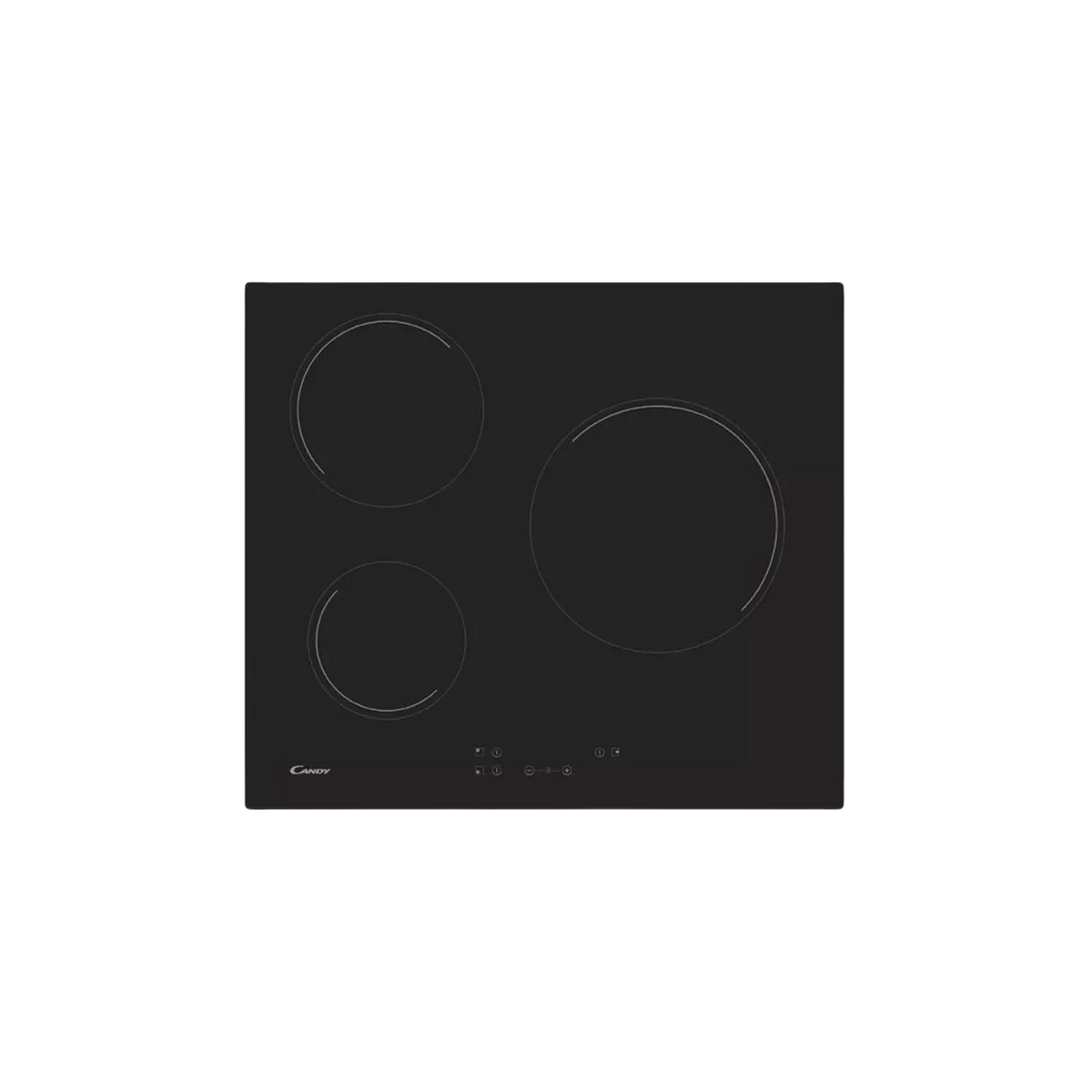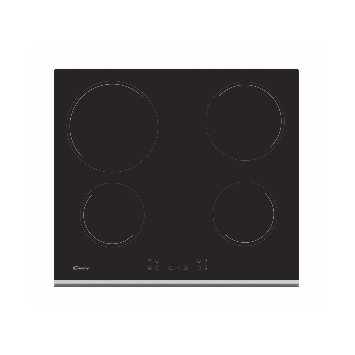 Placa vitrocerámica - Candy Timeless CH63CC/4U2, 3 Zonas, Zona grande 25 cm, Float glass, 60 cm, Negro