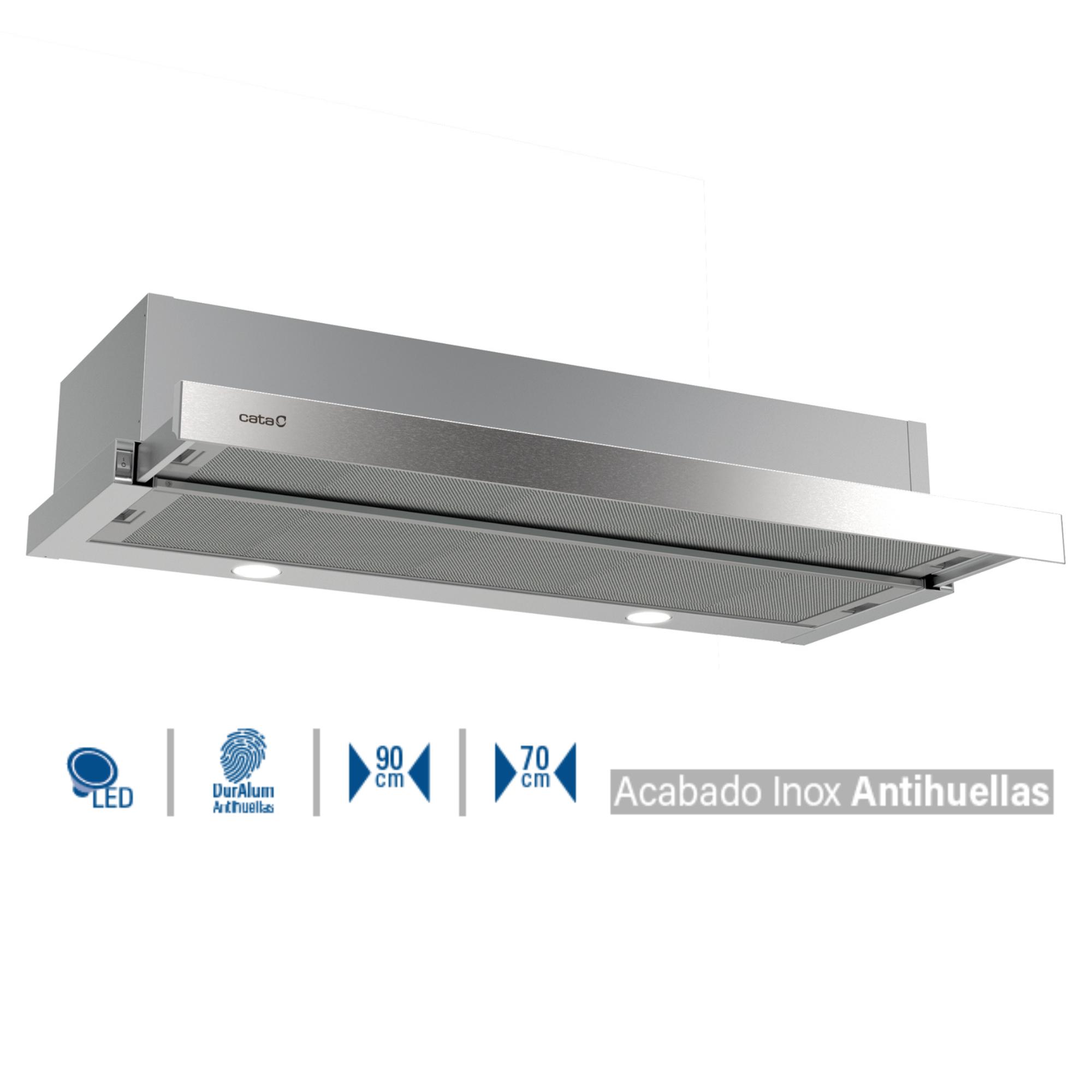 Campana decorativa - CATA 2189308, 4 velocidades, 600 m³/h, 895 mm, Inox
