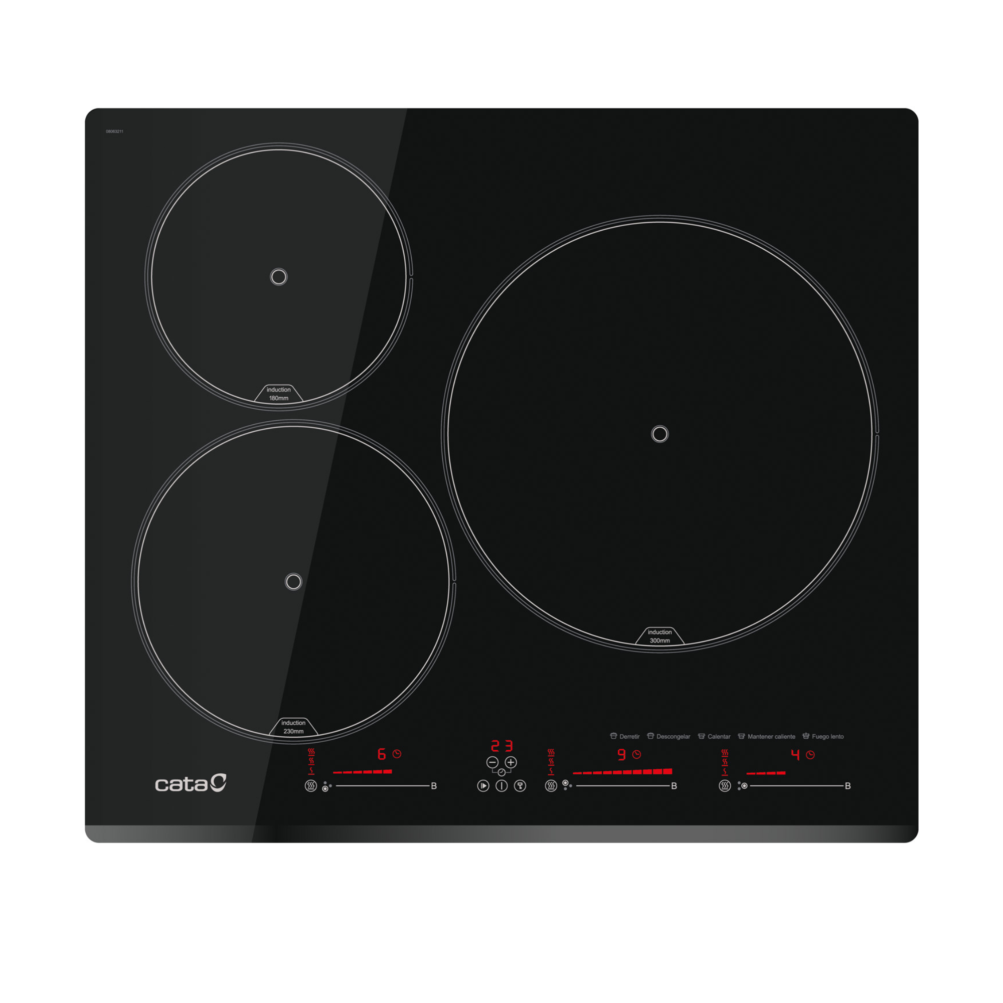 Placa de inducción - CATA INSB 6003E2 BK, 3 zonas, 590 mm, Negro