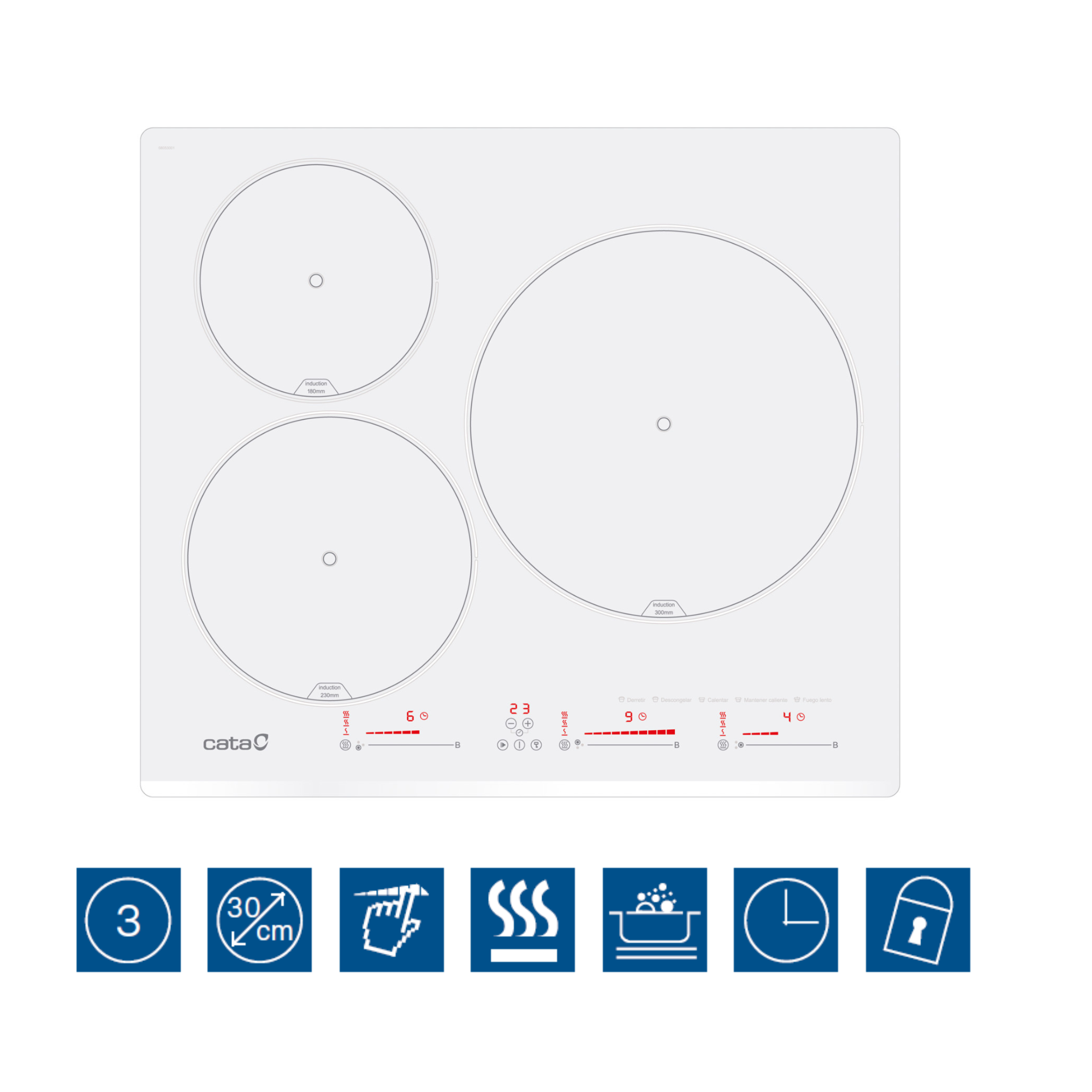 Placa de inducción - CATA INSB 6003 E2 WH, 3 zonas, 590 mm, Blanco