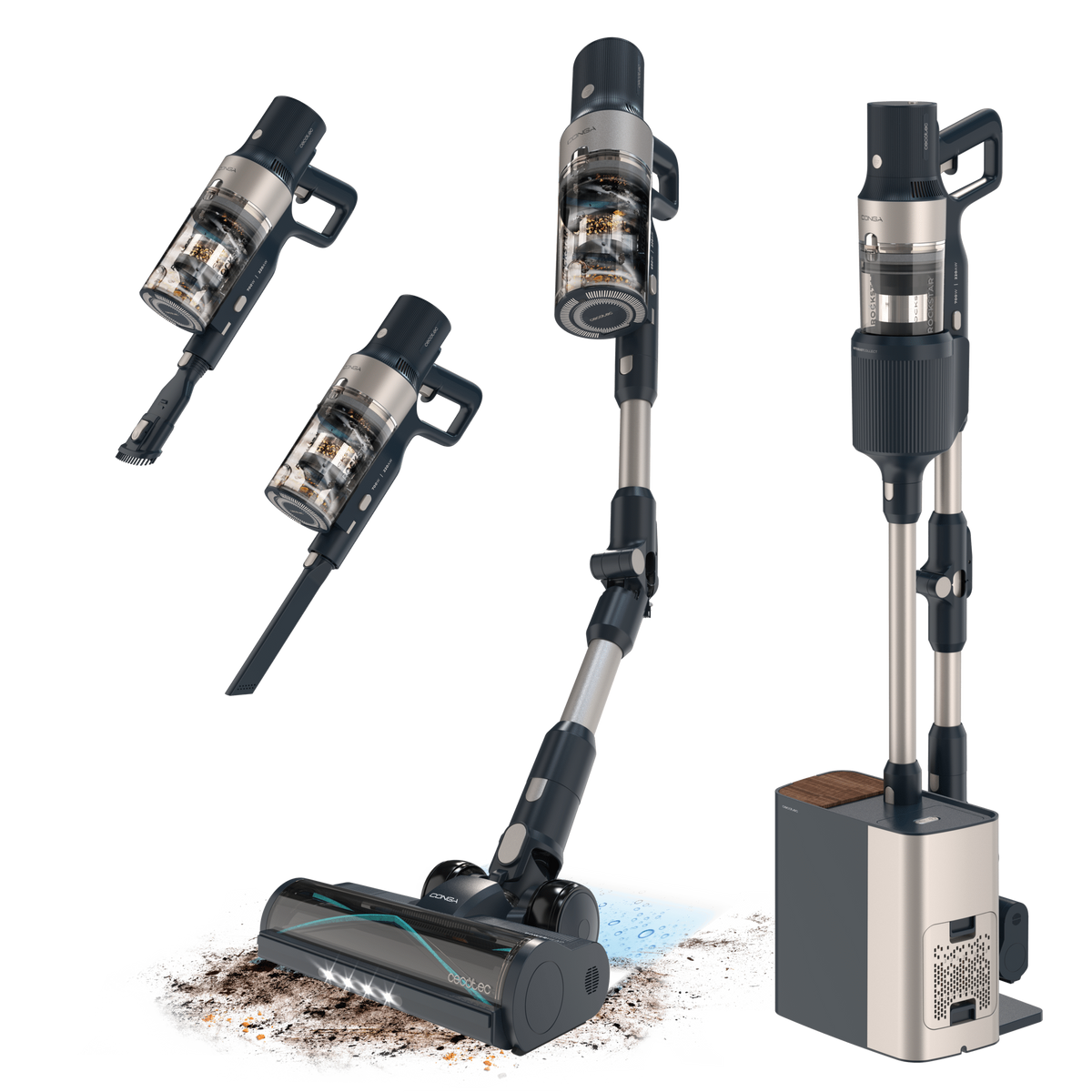 Aspirador escoba - CECOTEC Conga Rockstar 5500 Hurricane Station Pet Flex, 700 W, Potencia de succión 30 kPa, Depósito 0,5 ml, Autonomía 120 min, Multicolor