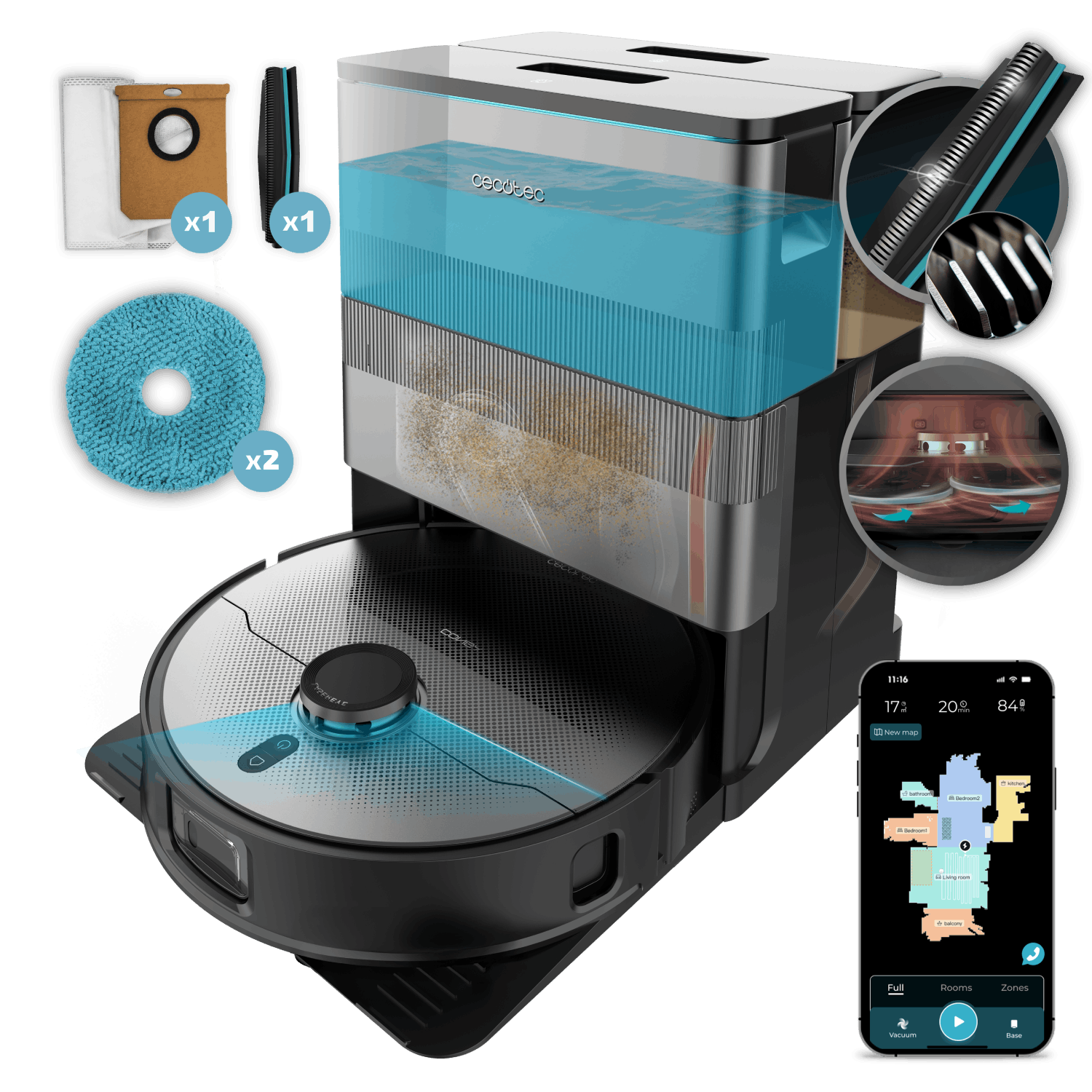 Aspirador escoba - Cecotec Conga Rockstar RS70 Pet Flex, 500 W, 65 min Autonomía, Sin Bolsa, Cepillo para Animales, Negro/Dorado