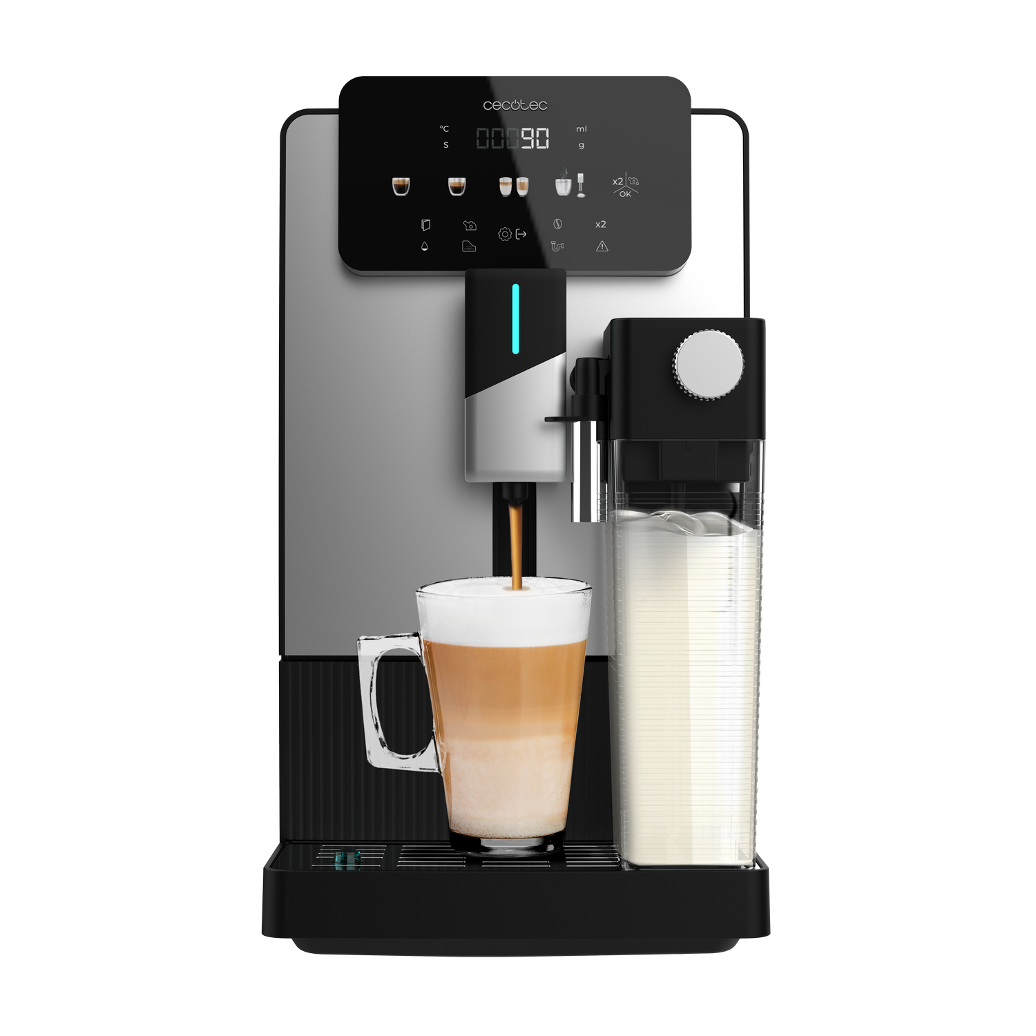 Cafetera superautomática - Cecotec Cremmaet Latte, 19 bar, 1300W, Depósito de leche 400ml, Depósito de agua 1.1L, Display táctil, Molinillo, Negro