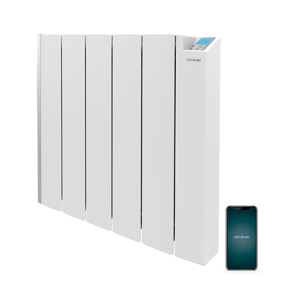 Emisor térmico - Cecotec ReadyWarm 6000 Thermal Ceramic Connected, 1500 W, 6 Elementos , 4 Modos, Pantalla LCD, Wi-Fi, Blanco