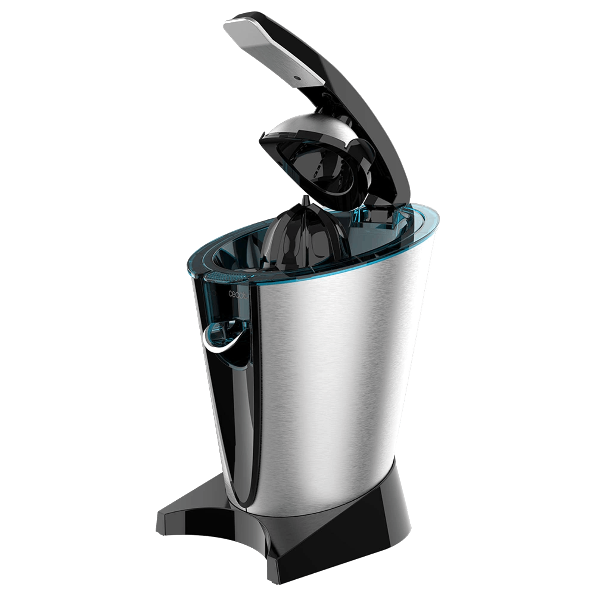1x Exprimidor eléctrico de brazo, 2x conos de plástico, 1x filtro de acero inoxidable