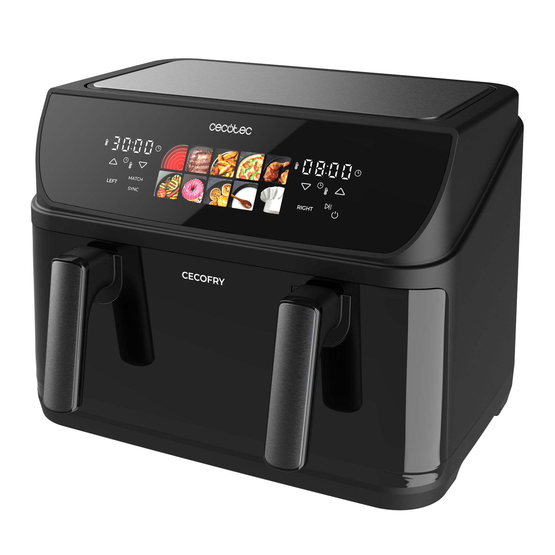 Freidora de aire - Cecotec Cecofry&Grill Duoheat 10000, 2800 W, 10l, Doble cubeta, 4 grills, 10 menús, Negro