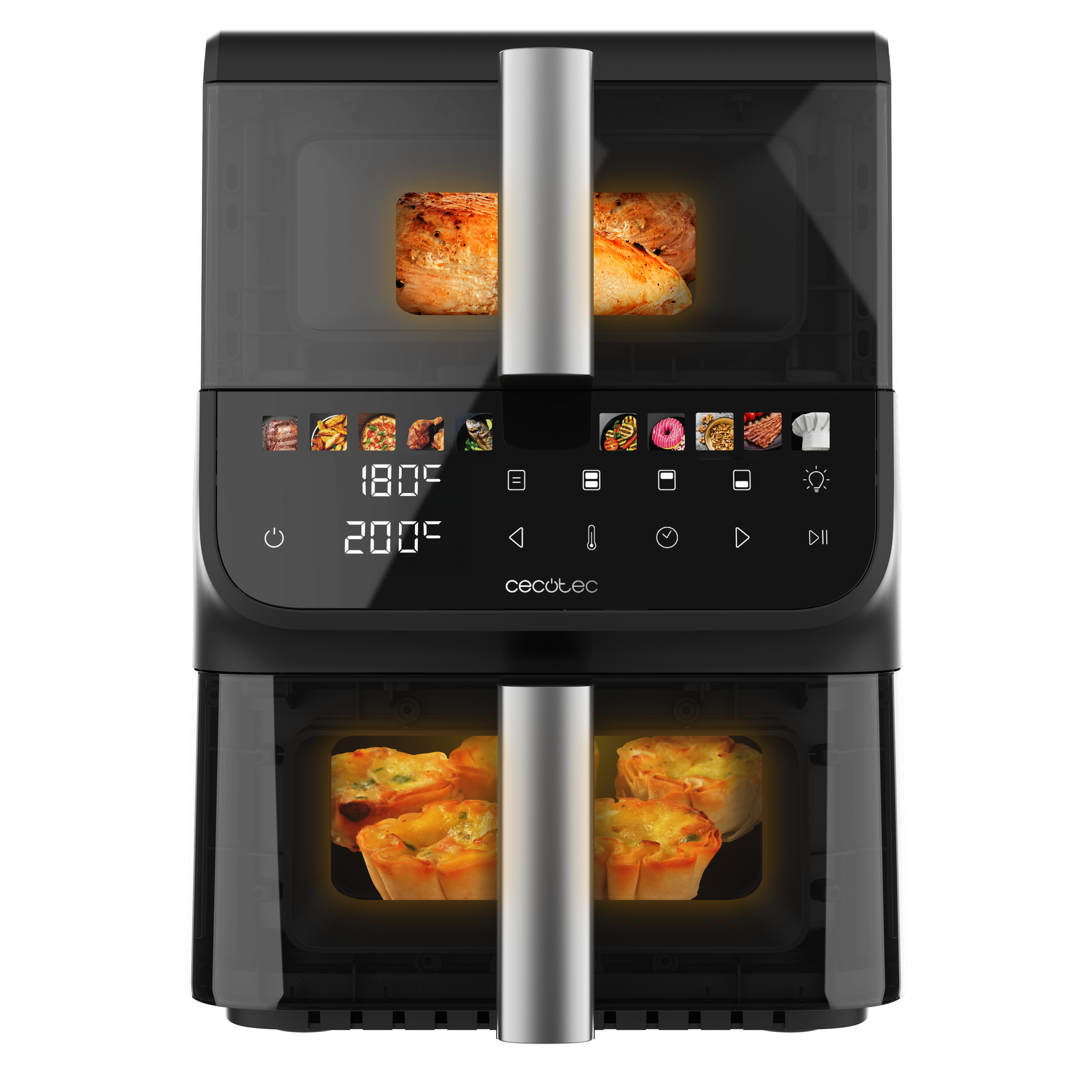 Freidora de aire - Cecotec Cecofry DuoLevel 10000 DuoSize Window, 2000W, 10L, 2 cubetas de 3.5L y 6.5L, 10 menús, Función Sync, Panel táctil, Negro