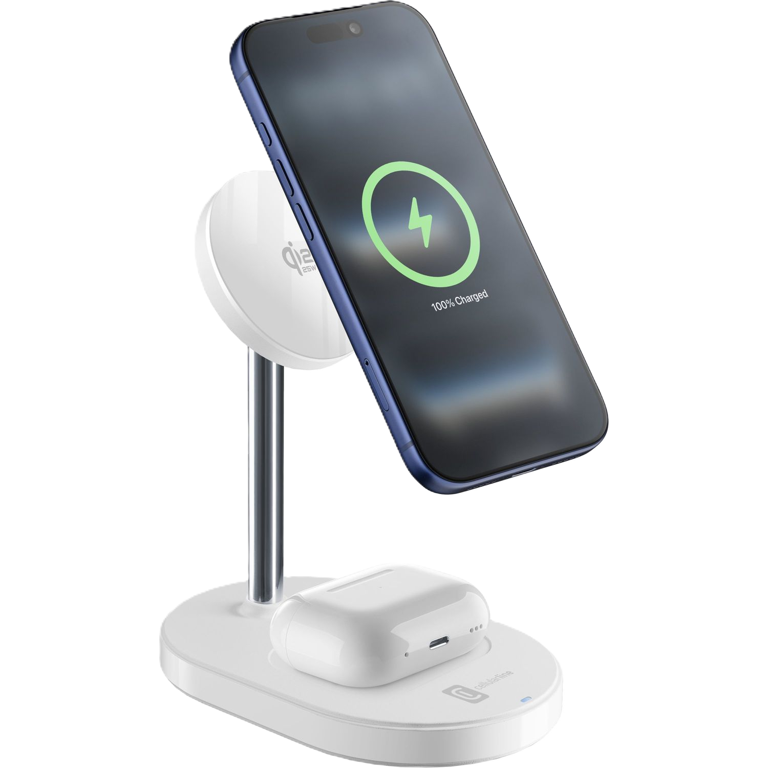 Cargador móvil inalámbrico - CellularLine MAG TRIO, Estación de carga Mag con tecnología Qi2, Blanco
