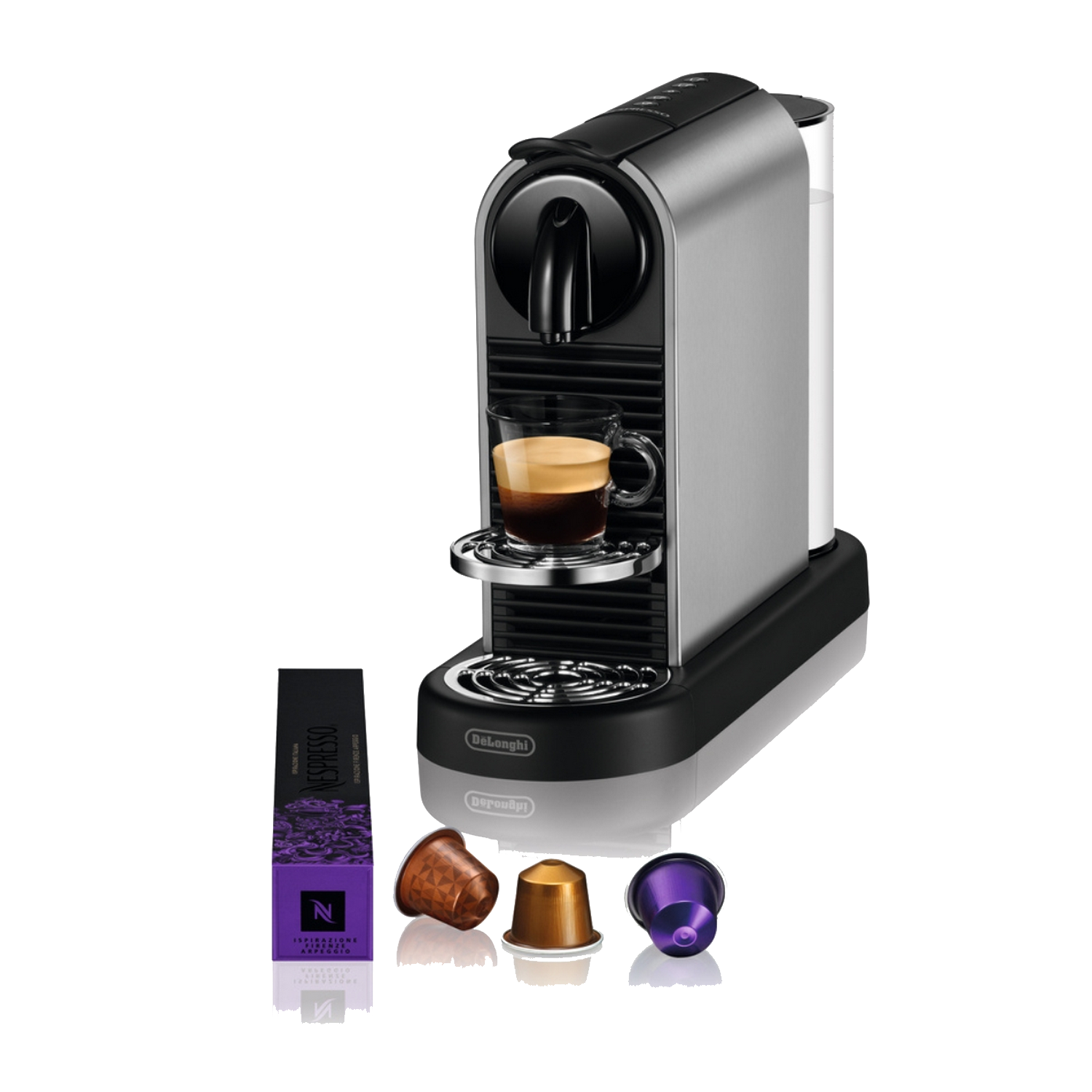 Cafetera de cápsulas - De'Longhi Nespresso® Citiz EN220.T, 1260W, 19 bar, 1 l, 4 recetas + agua hirviendo, Titan