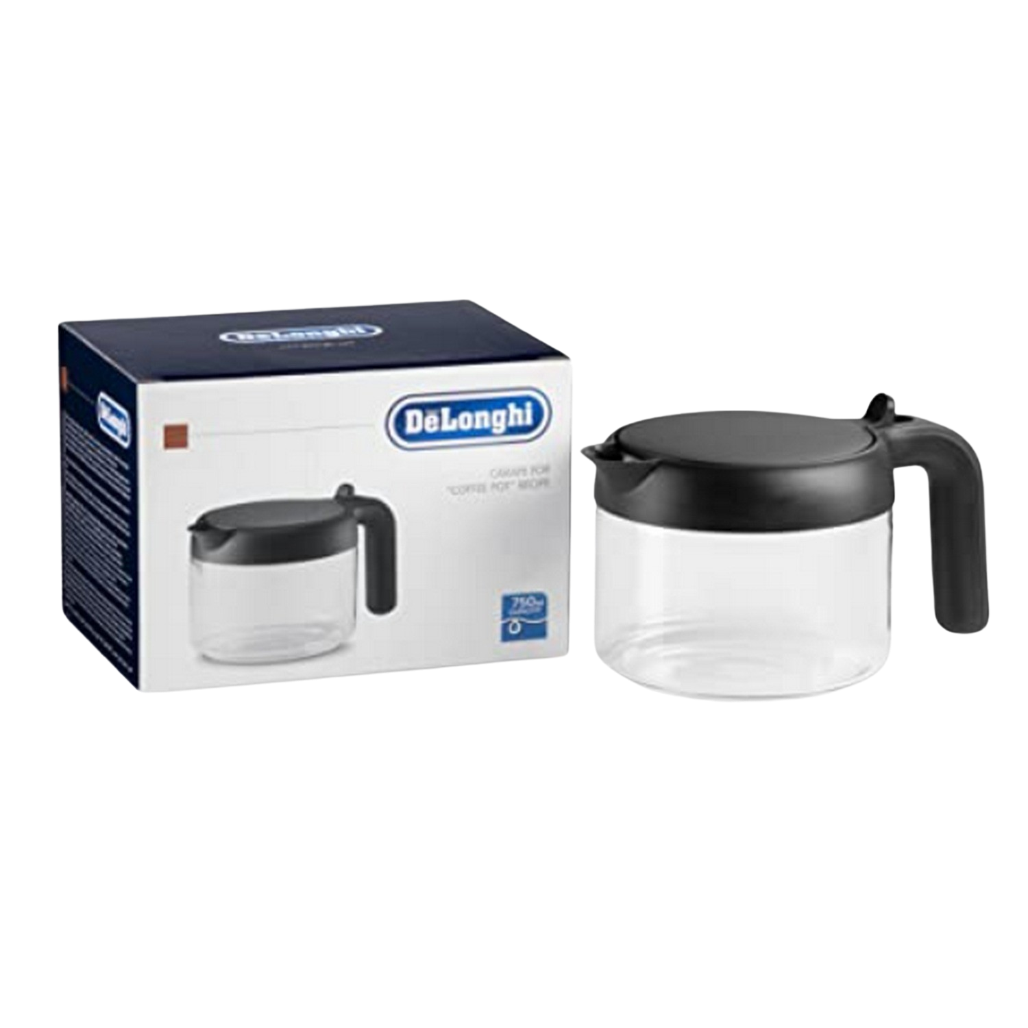 Jarra de cristal - De'Longhi DLSC021, Para 6 tazas de café, Transparente/Negro