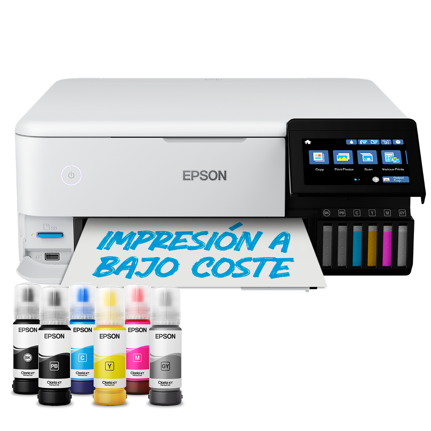La razón principal es el ahorro a largo plazo y la comodidad. Los cartuchos tradicionales son caros y traen poca tinta. El sistema EcoTank, que es la seña de identidad de muchos Productos Epson, utiliza depósitos de gran capacidad que se rellenan con botellas de tinta de precio económico.