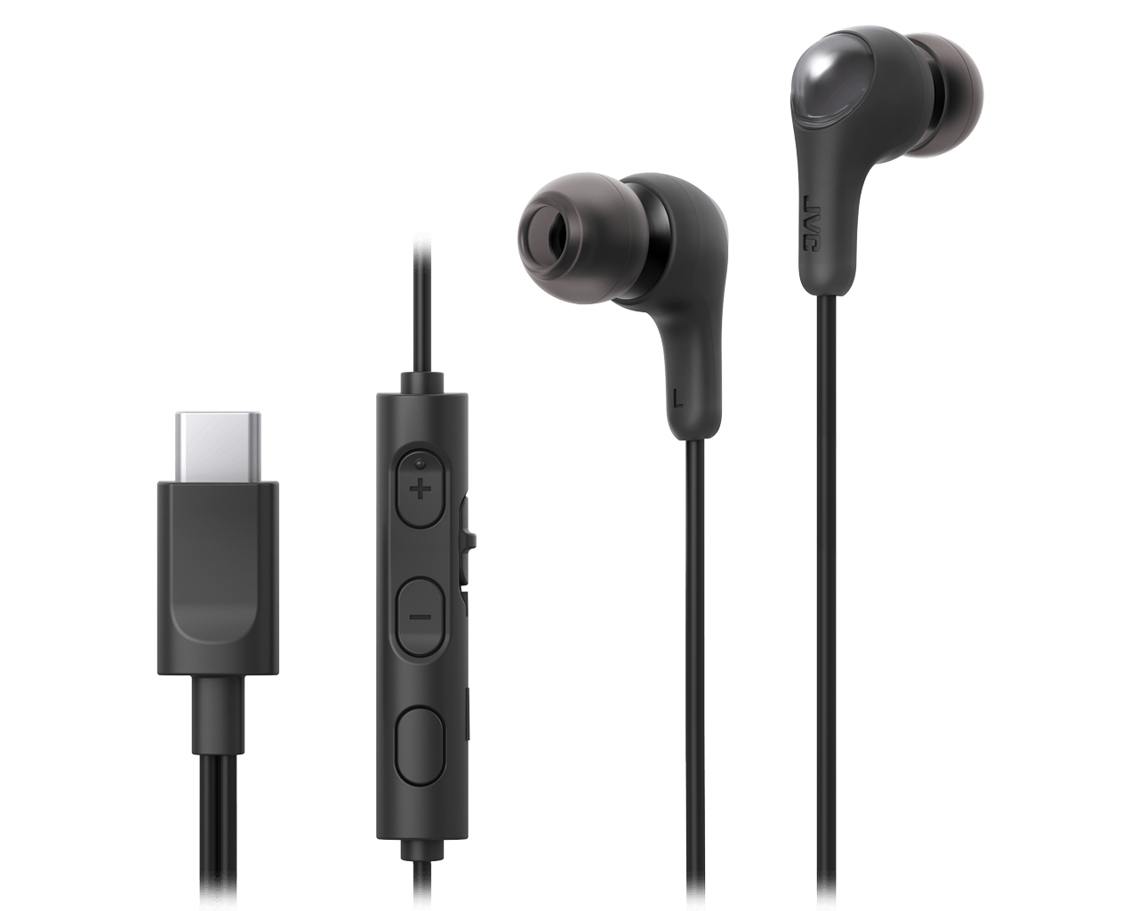 Auriculares de botón - JVC HA-FR9UC, 3 botones, Cable 1.2 m, USB-C, Micrófono integrado, Negro