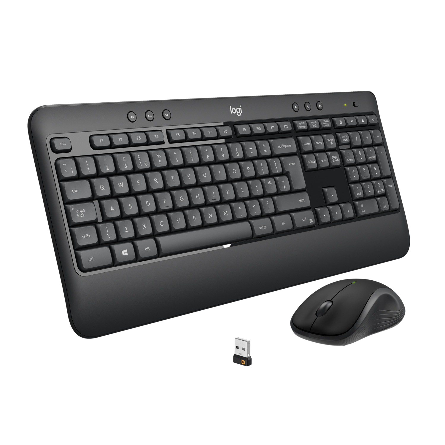 Wireless Keyboard K540, Wireless Mouse M310, Receptor Logitech Unifying™, Tres pilas AA alcalinas (ya instaladas), Documentación del usuario