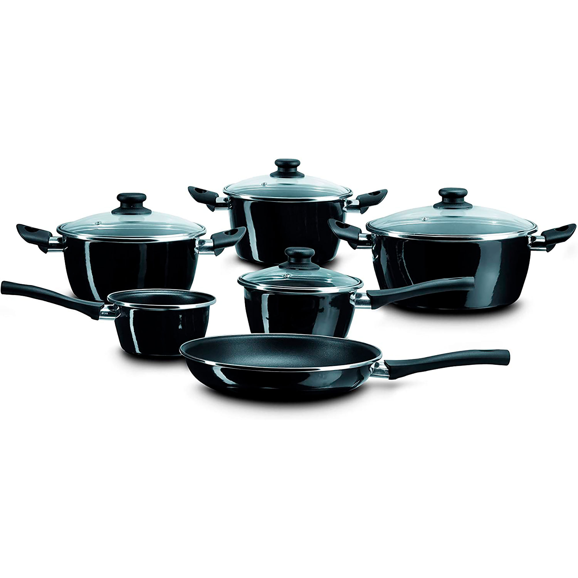 Batería de Cocina Inducción 10 Piezas, Antiadherente Bicapa libre de PFOA, Tapas Cristal, Acero
