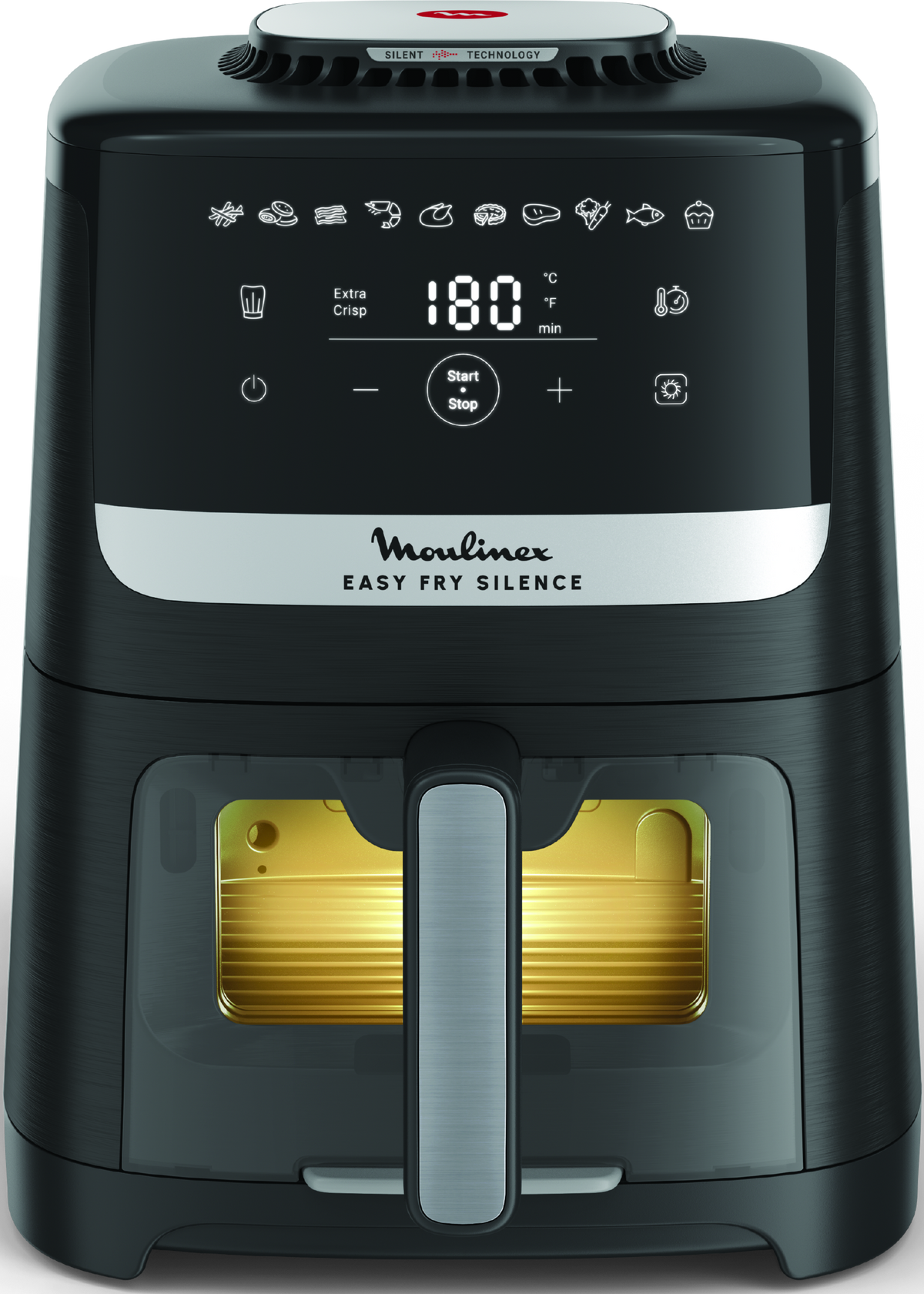 x1 freidora de aire Easy Fry Silence Vision de Moulinex (5 L), rejilla de grill moldeada a presión con revestimiento cerámico antiadherente, tapa antigoteo para un almacenamiento fácil