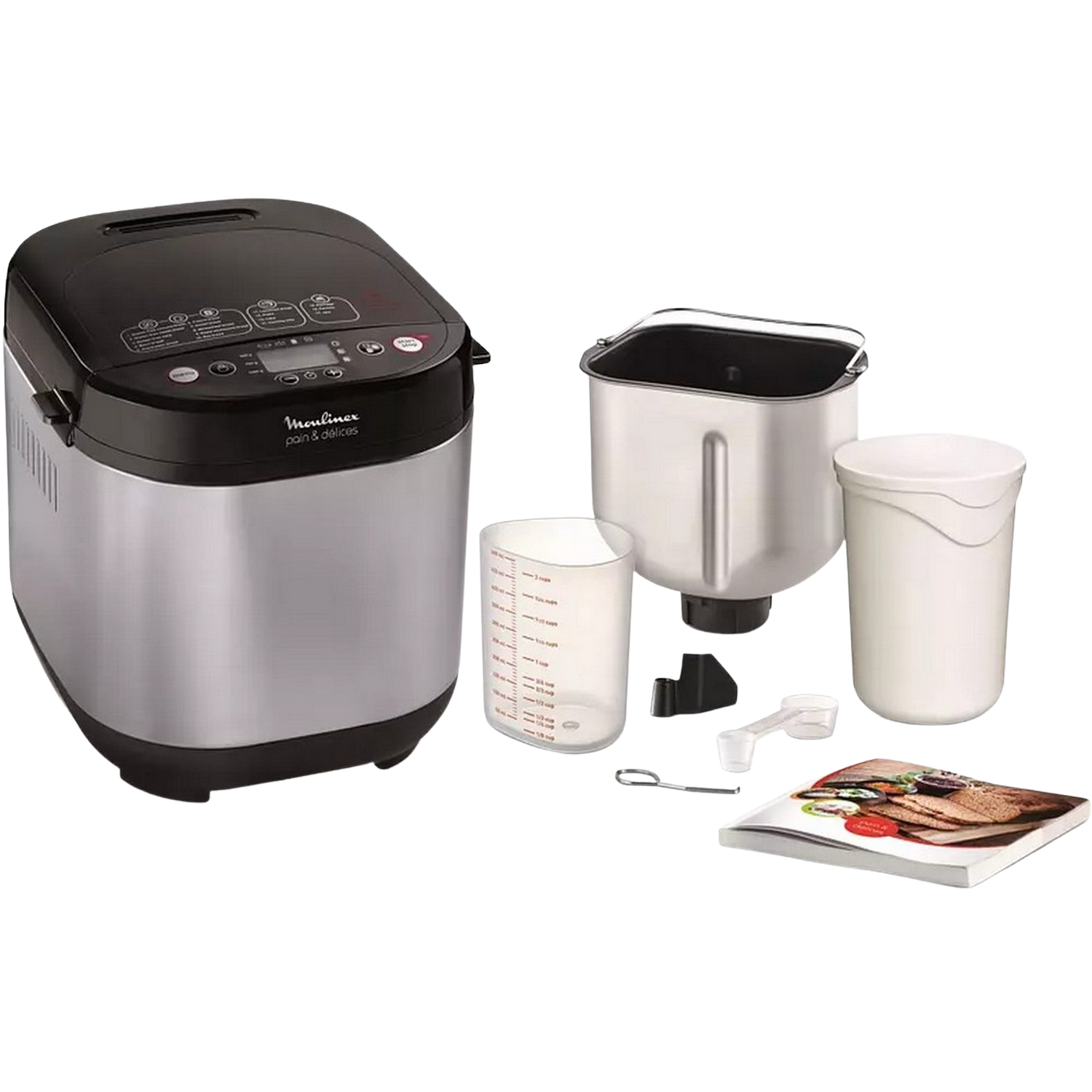 1x Panificadora, 1x Libro de recetas, 1x Taza de medición