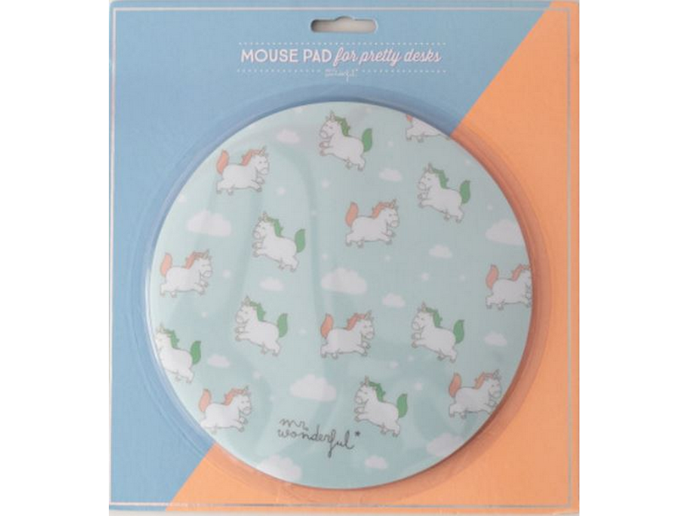 Alfombrilla para ratón con forma circular y divertidas ilustraciones de mini unicornios sobre fondo celeste. Mousepad con tejido antideslizante y adherente para escritorios de todo tipo que ayuda a optimizar el rendimiento de tu ratón Mousepad recomendado tanto para PC de escritorio como portátil. fácil de transportar. Soporte compatible con mouse óptico. útil para gaming y diseño gráfico. El gadget que no puede faltar en tu setup. flexible y fabricado con materiales de primera calidad.