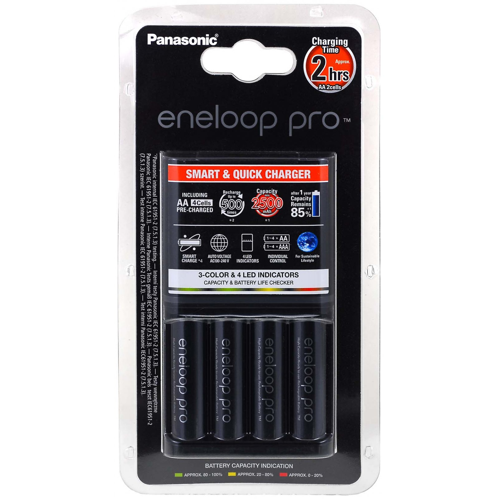 Cargadores pilas - PANASONIC Cargador Rápido Panasonic eneloop pro BQ-CC65 para Pilas Recarg. 1-4 NiMH AAA/AA con Visor LCD