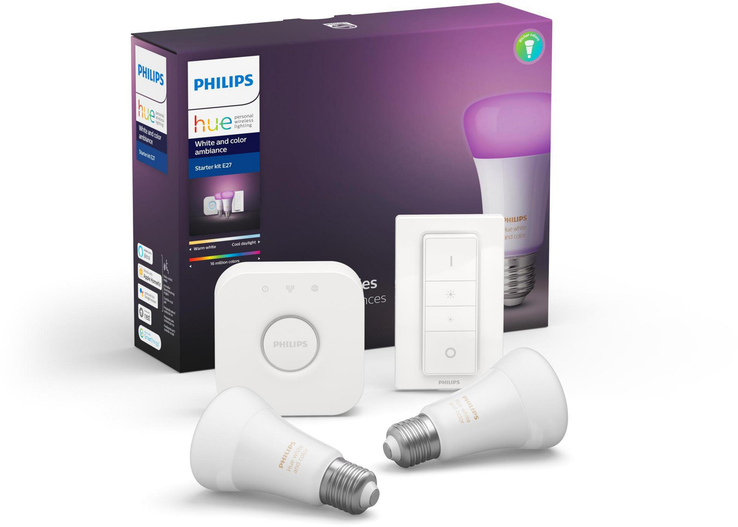 Bombilla inteligente - PHILIPS 929002450221, Casquillo E27, Control por voz, Detector de movimiento, Regulador de intensidad, Luz blanca regulable de fría a cálida