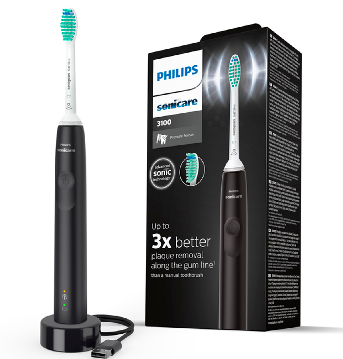Cepillo eléctrico - PHILIPS HX3683/54, 2 velocidades, Negro