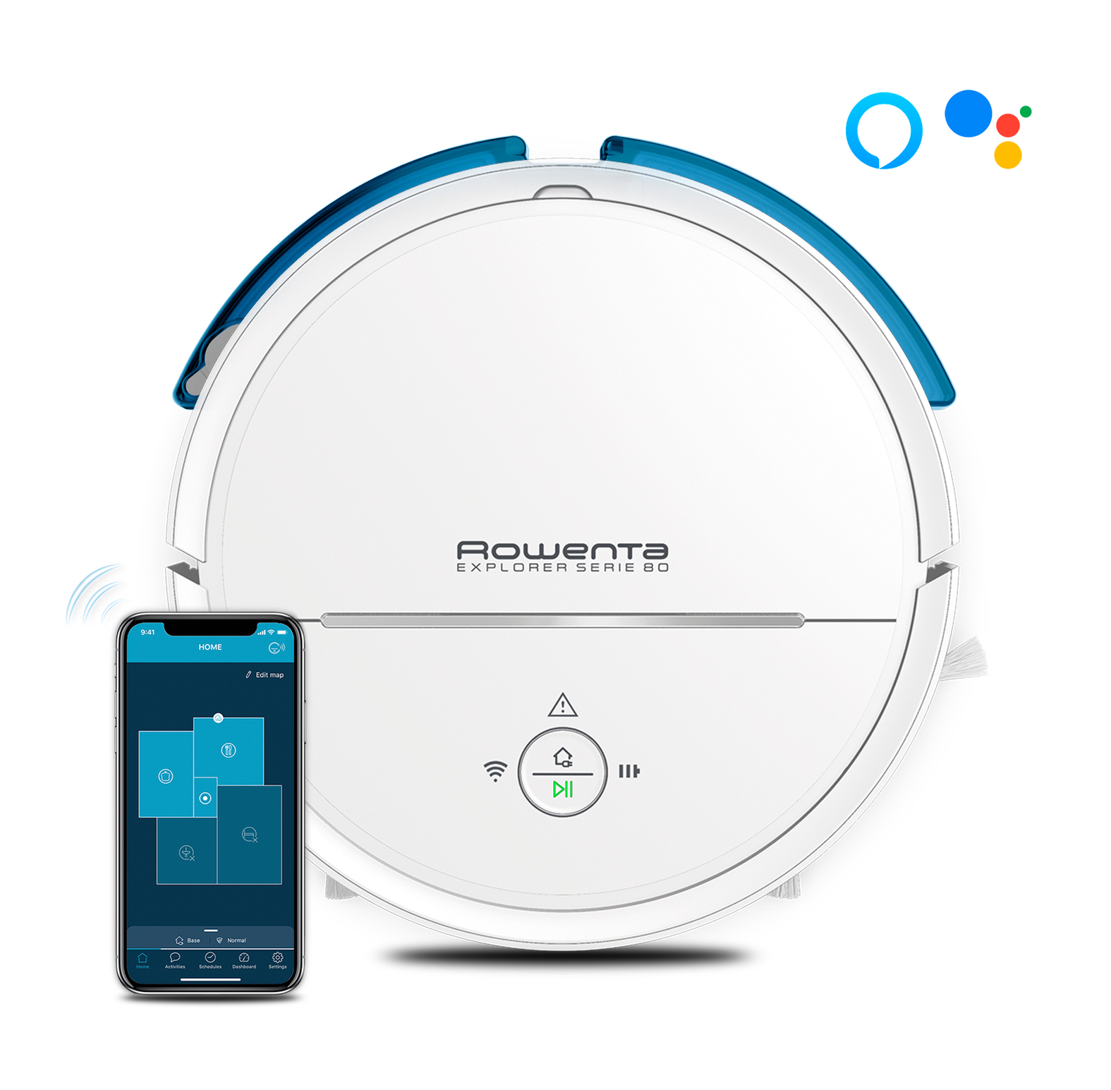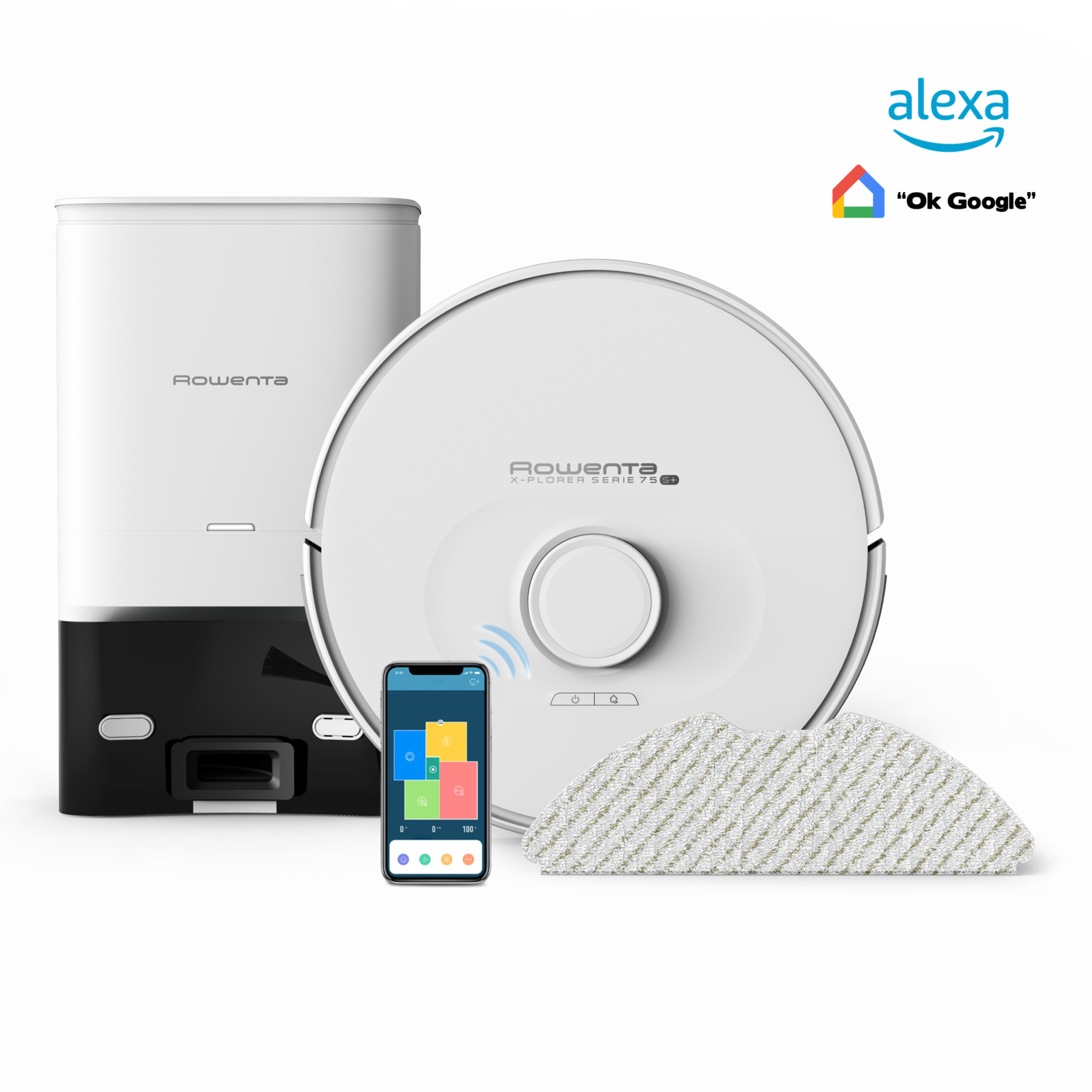 Robot aspirador - ROWENTA X-Plorer Series 70 RR8477, 1 kW, Potencia de succión 2,3 kPa, Depósito 0,4 l, Autonomía 120 min, Branco