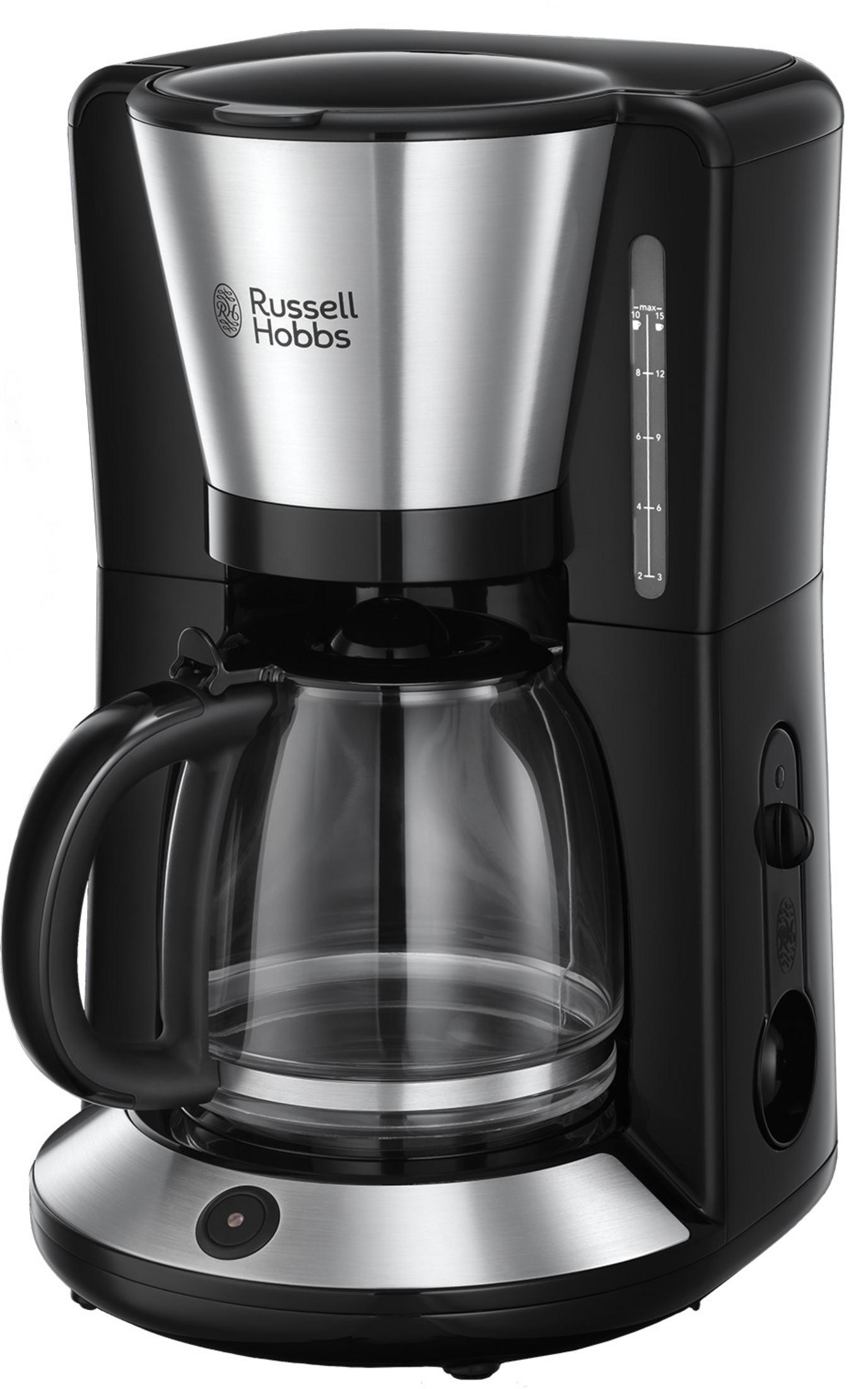 Cafetera de goteo - RUSSELL HOBBS 24010-56, 1100 W, 1,25 l, 10 tazas, Inox y negro