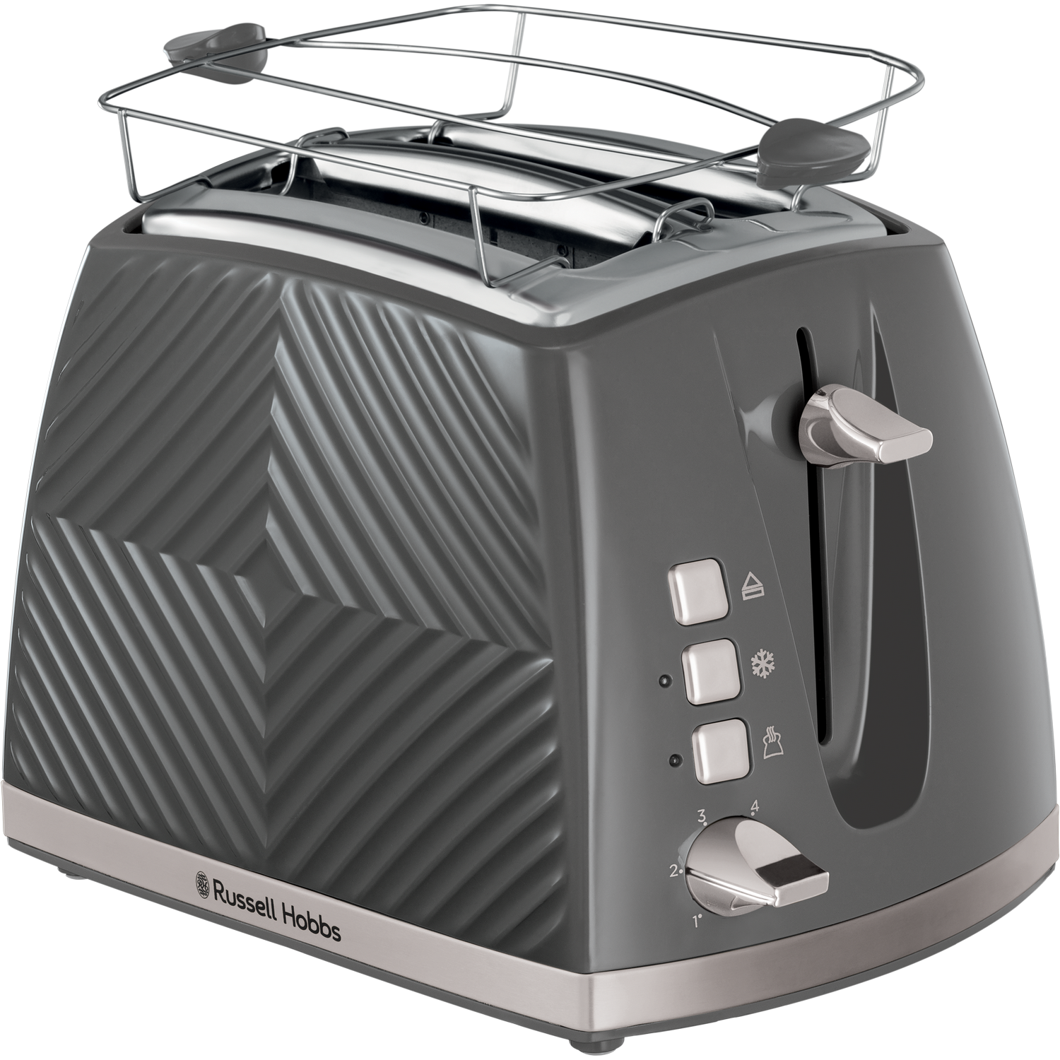 Tostadora - RUSSELL HOBBS 26392-56, 850 W, 2,0 ranuras, 2,0 rebanadas, Control regulable del dorado de la corteza niveles tostado, Gris
