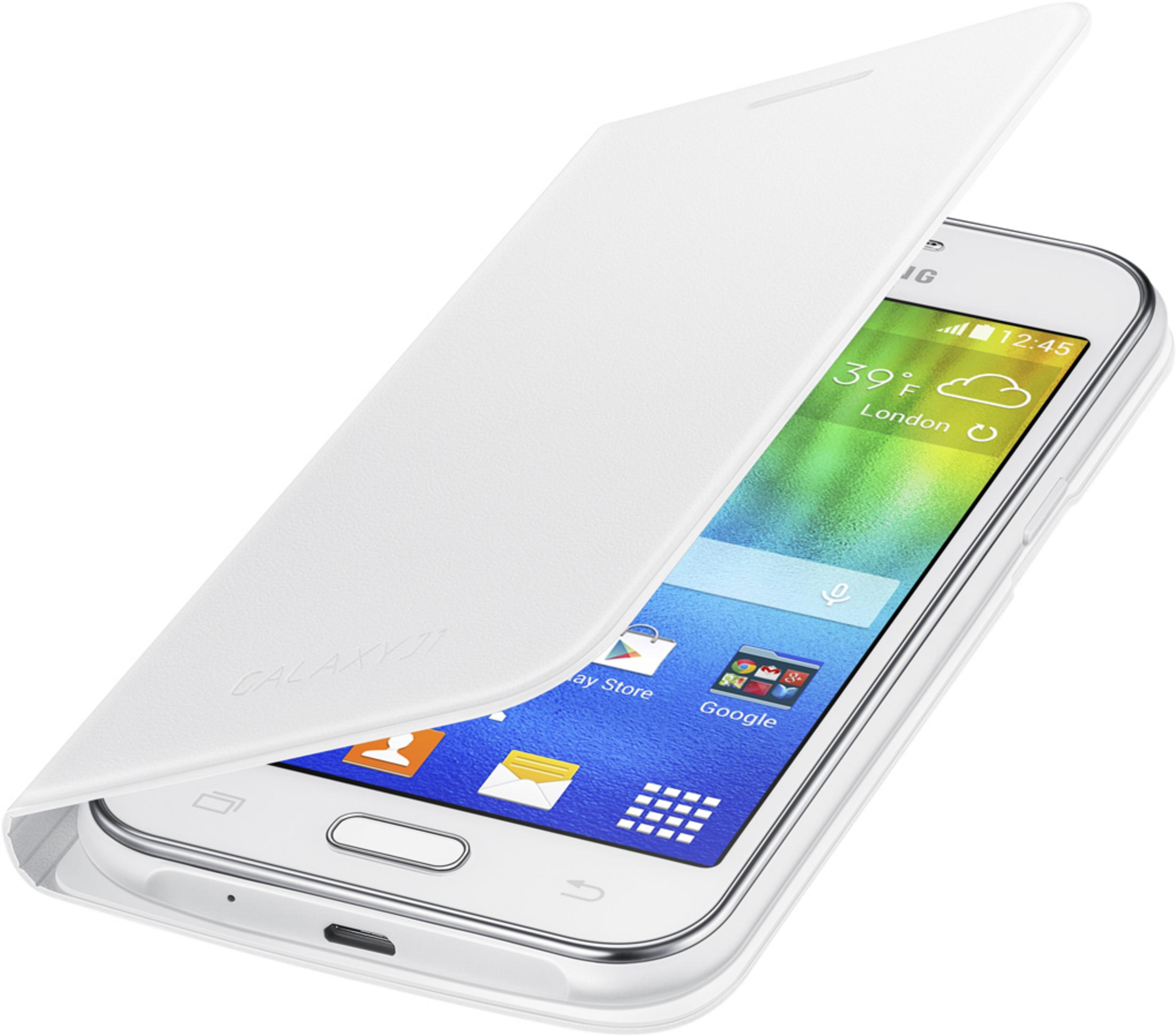 Funda para móvil - SAMSUNG EF-FJ100BW, Compatible con Samsung Funda flip cover Samsung EF-FJ100BWEGWW para Galaxy J1 blanca, Blanco