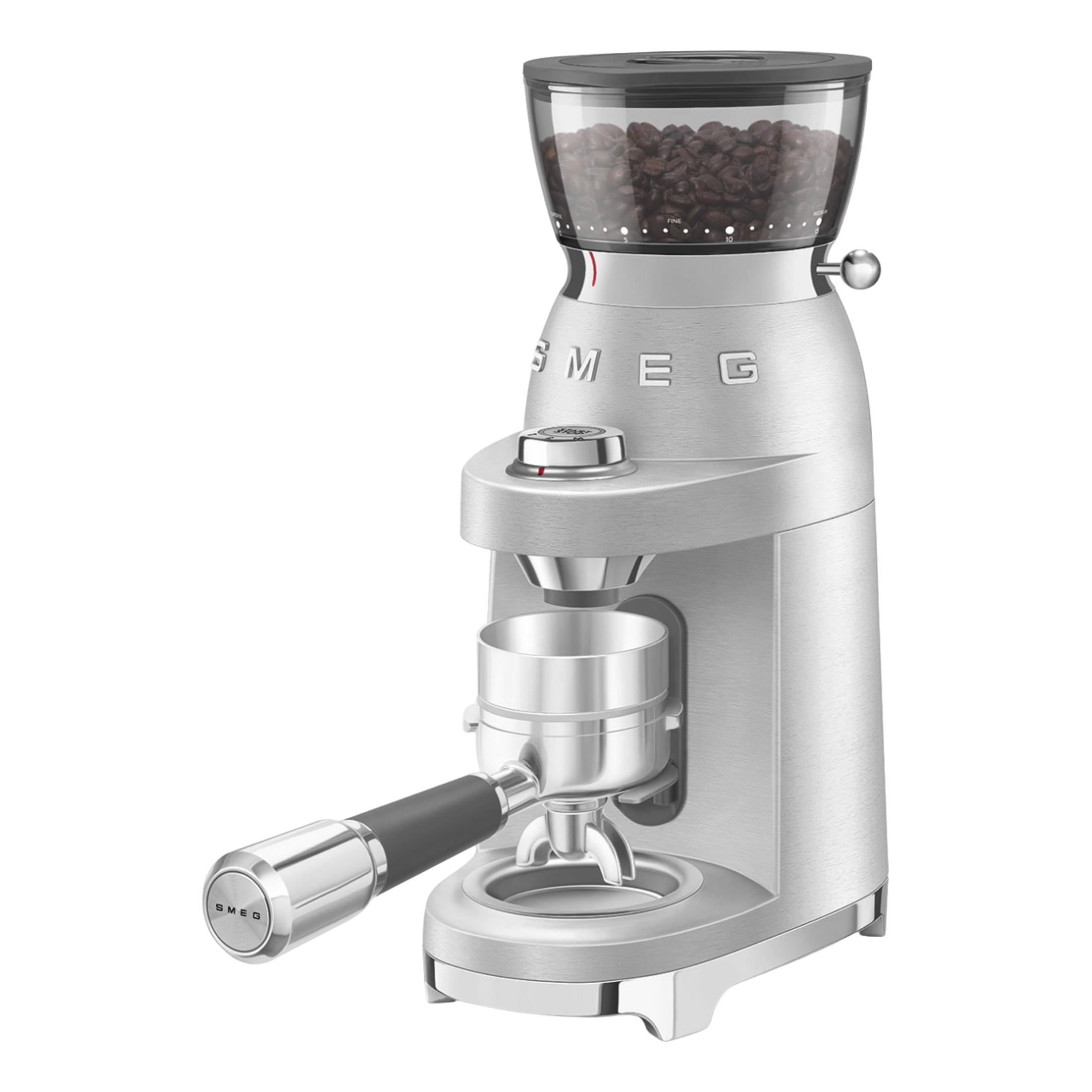 Molinillo de café, cepillo de limpieza, contenedor de café molido, soporte para centrado del filtro, instrucciones