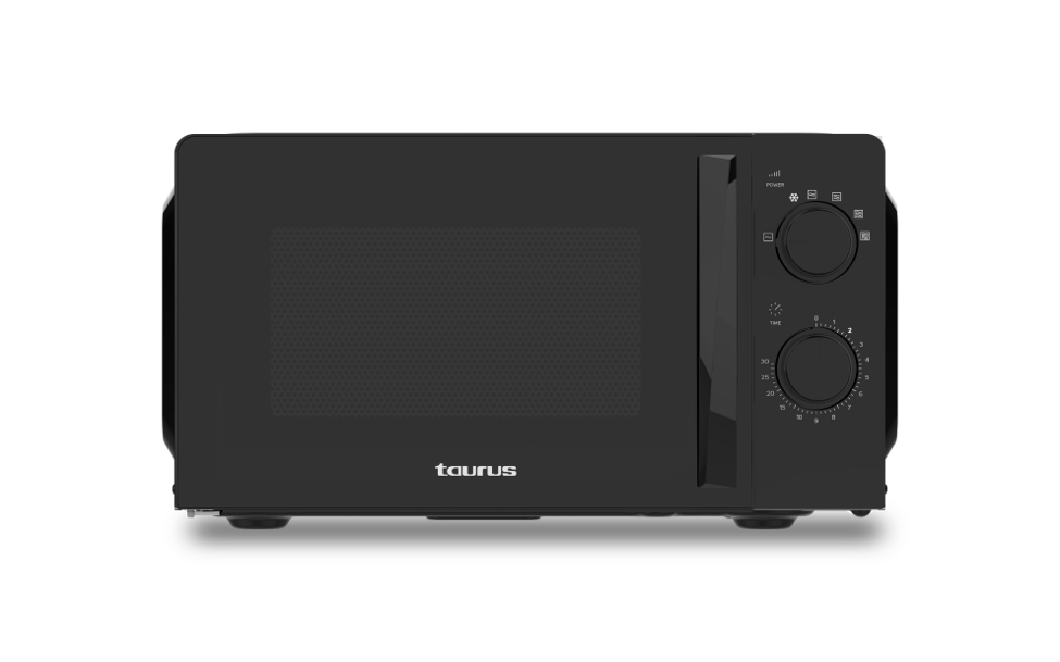 Microondas - Taurus Ready Ver.II, 700 W, 6 Niveles de Potencia, 20l, Temporizador 30 min, Descongelación, Luz Interior, Puerta de Cristal, Black