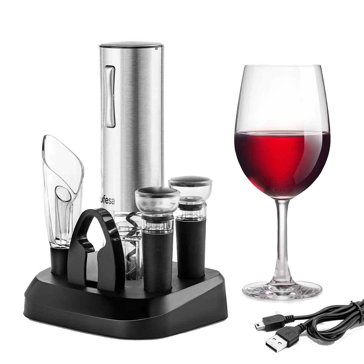 Sacacorchos - Ufesa EasyClassy, Eléctrico, Inalámbrico, Inox/Negro