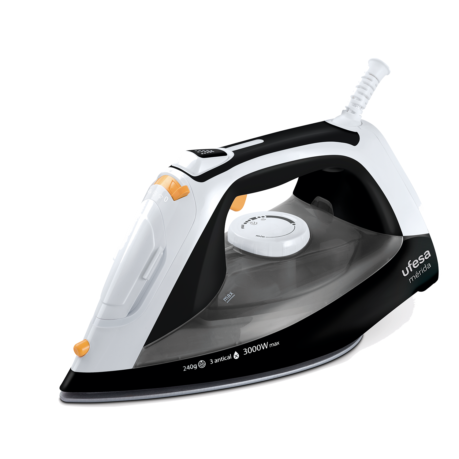 Plancha de vapor - Ufesa PV3650 Mérida, 3000 W, 400 ml, 240 g/min, Suela Cerámica, Negro