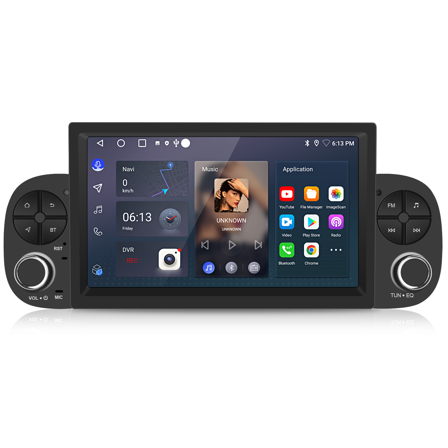 Autorradio - 2 DIN para Fiat Panda (2013-2020) Carplay Android Auto 64GB JUNSUN, 7 "", 2*USB, black