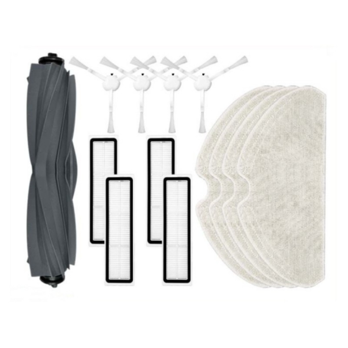 1 x cepillo principal (cepillo de goma) 4 filtros HEPA 4 x almohadilla de fregona 4 cepillos laterales