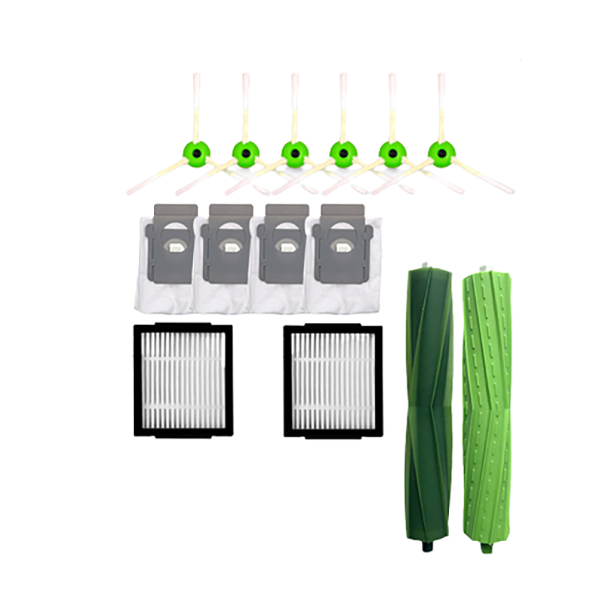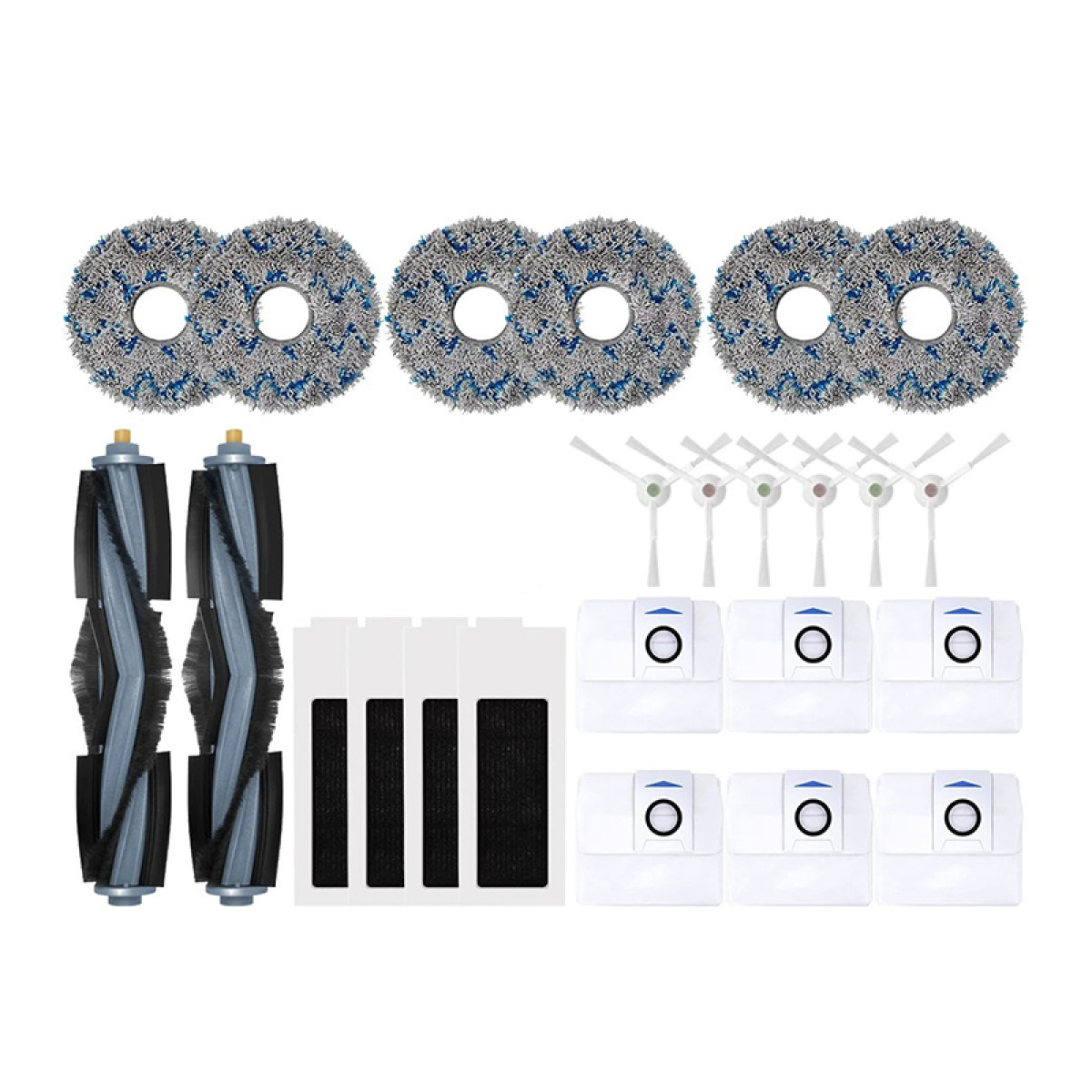 2 x cepillo principal 8 cepillos laterales 6 filtros HEPA 6 x almohadillas para fregona 2 cepillos de limpieza