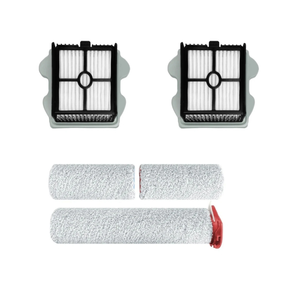 6 cepillos laterales 6 filtros de tanque de agua. 6 tornillos 4 trapeadores 4 filtros HEPA 2 cepillos de rodillo. 1 herramienta de limpieza. 1 rueda de recambio.